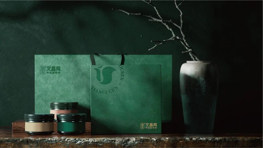 Logo设计以字体形式设计,以VI色中的主色调,着重于突出沿江文昌鸡的“中华老字号”品牌文化特质与品类。