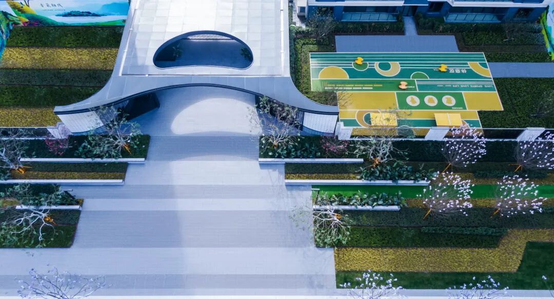 旭辉新津江山院采用以小见大的设计手法,打造外延城市,内有洞天的多进制山水礼序生活体验,在有限的场地资源条件下,通过现代手法演绎传统的空间与秩序。