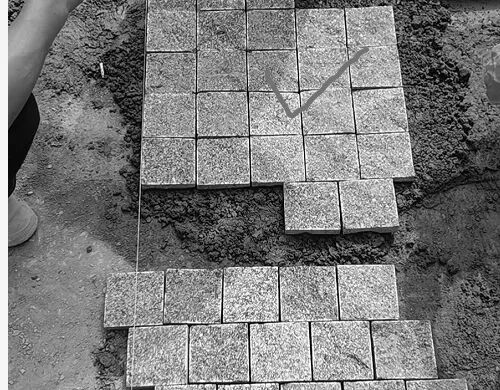 1.仿石砖整版切割编号,确保石材弧形拼接纹理延续,提升设计还原度细节。