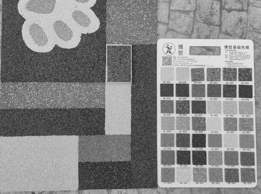 2.设计阶段及施工前期担心调色不明显,经多次材料打样比对,最终确定使用福鼎黑与芝麻黑。