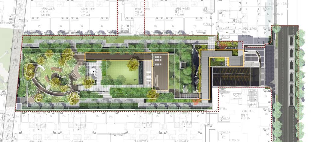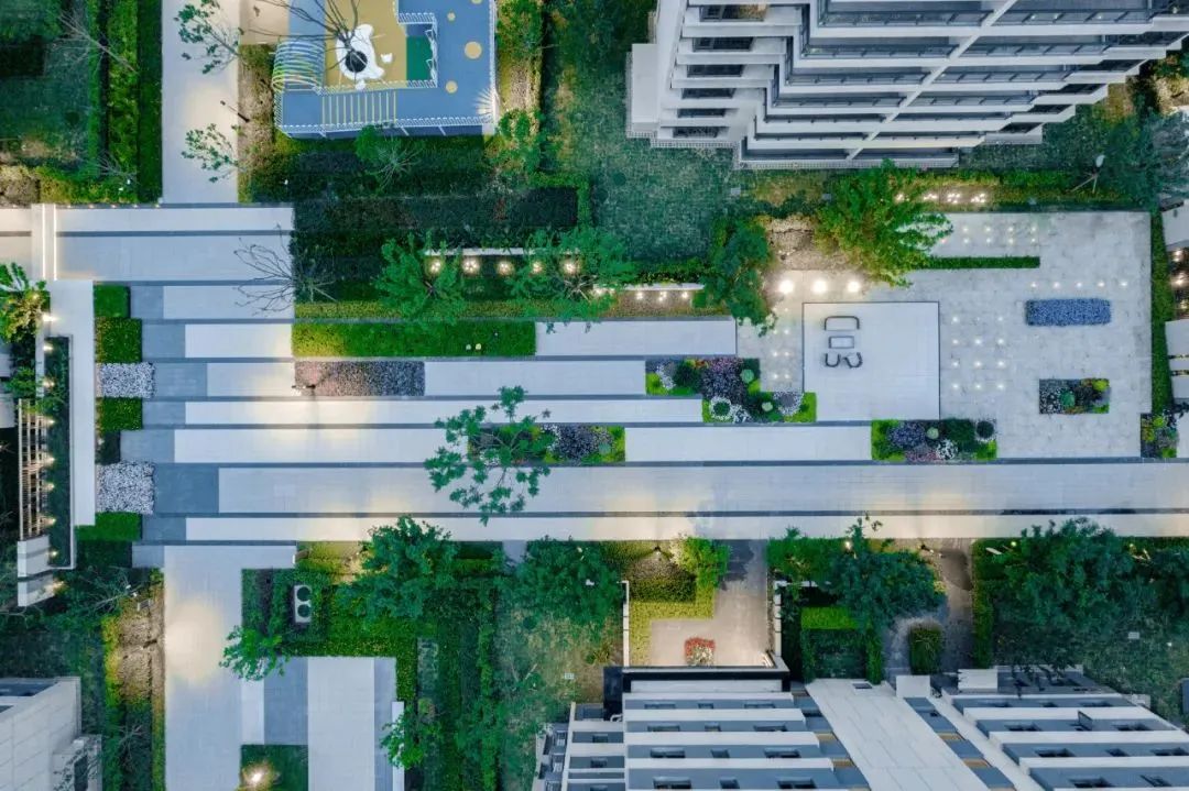以植物的生长姿态与印记优化自然景致与生态环境,且在装饰空间的同时,为住户提供更好的邻里互动和感知自然的契机。