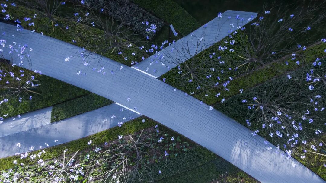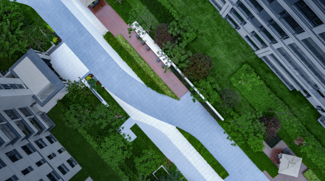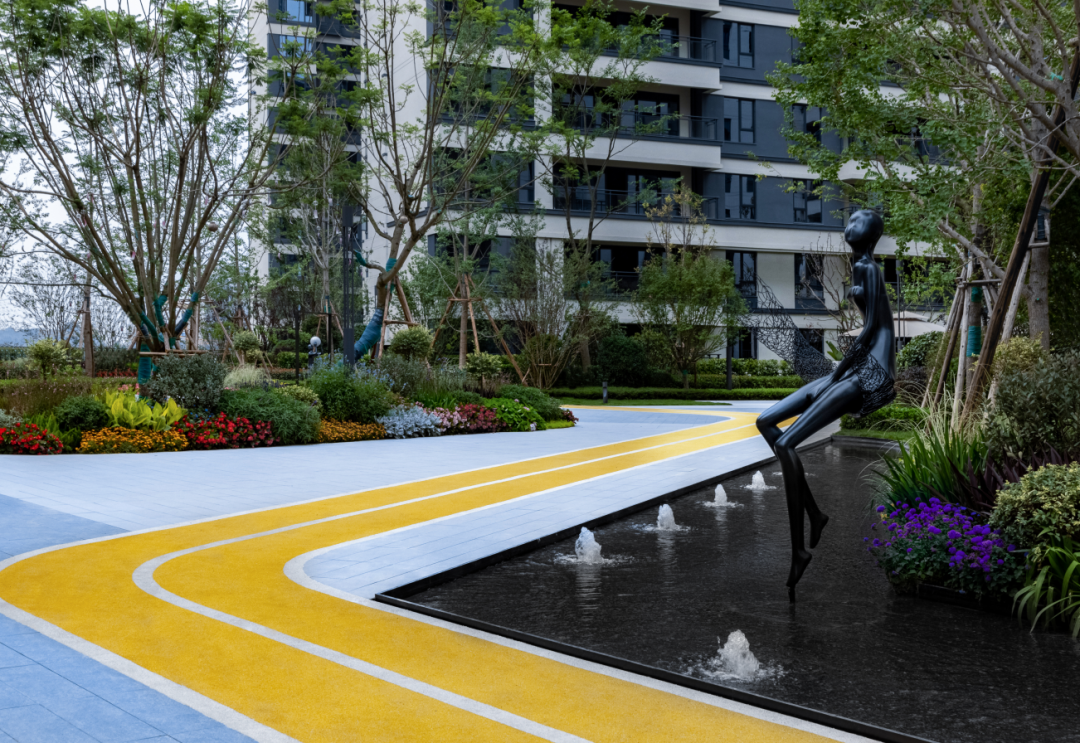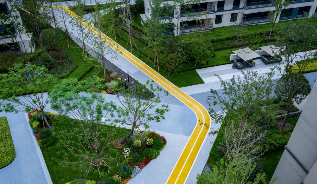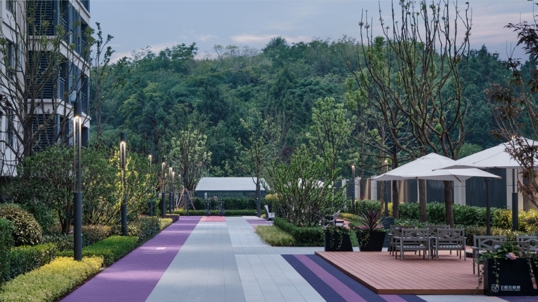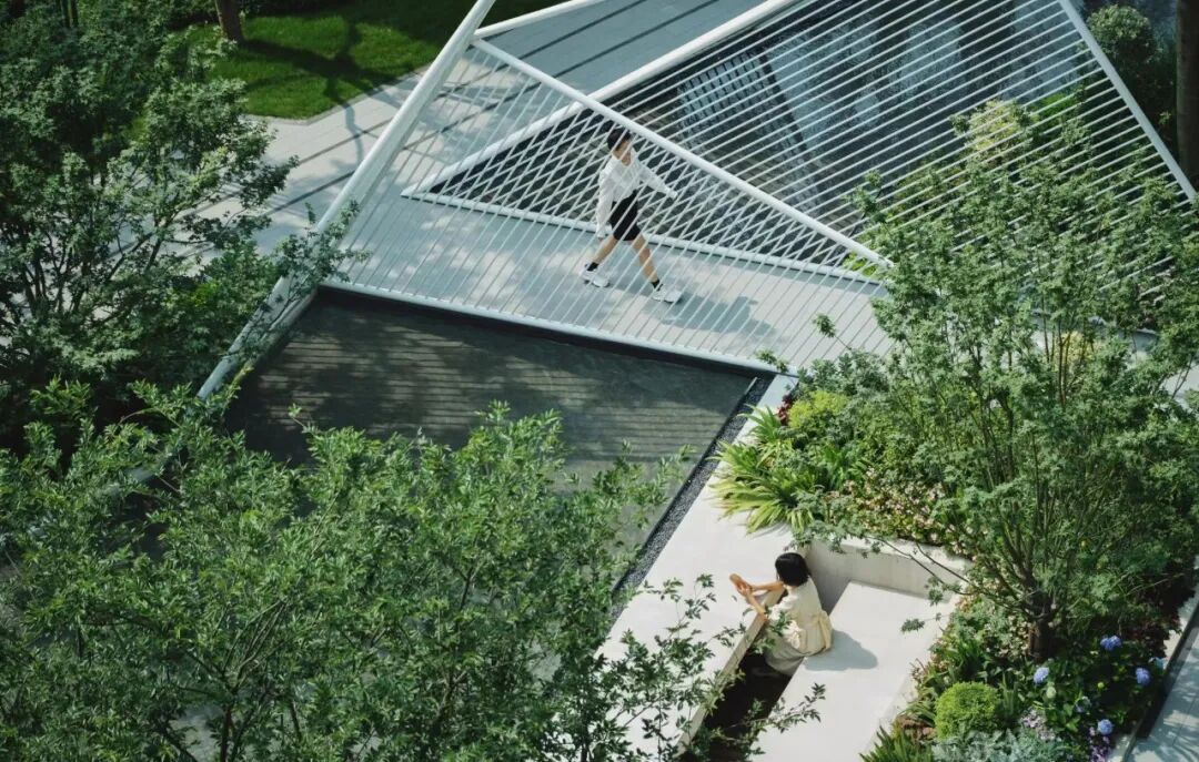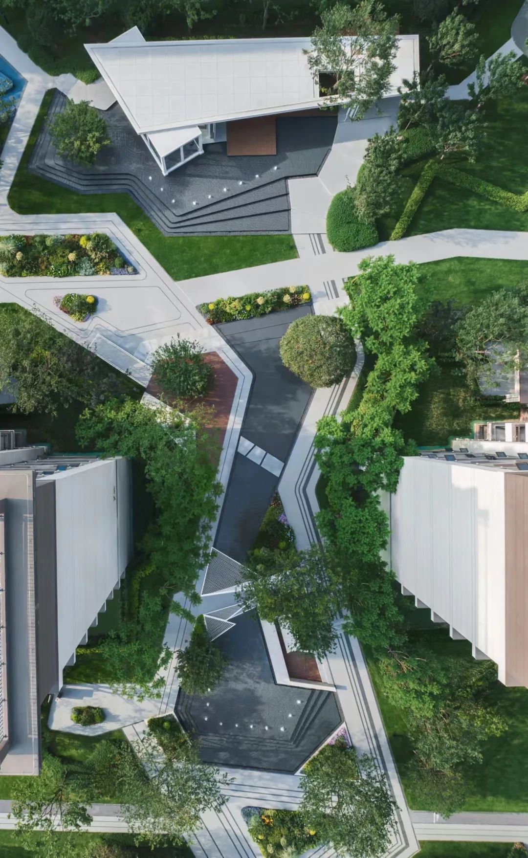 回旋转折的园路,将健康生活方式偕同绿氧鲜花,在平静而自洽的景观中,衔接每一种生活场景。