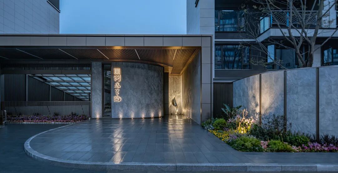 大门以流畅的弧线形线条感来打造微笑主题,对称型的植物布置带来归家的庄重仪式感。