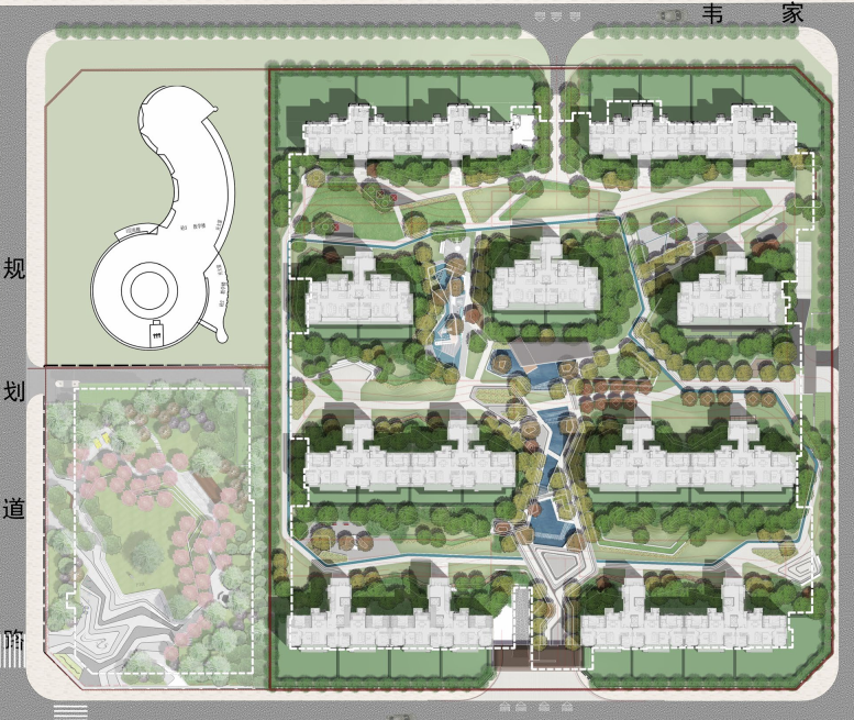 项目依托自然环境资源,建筑作为媒介,链接社区与公园,结合鳌山公园打造了一个生态、宜居、高品质的公园住区,营造一种休闲、生态的氛围。