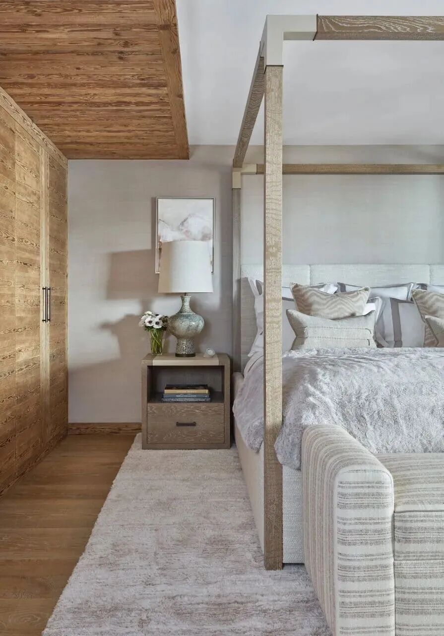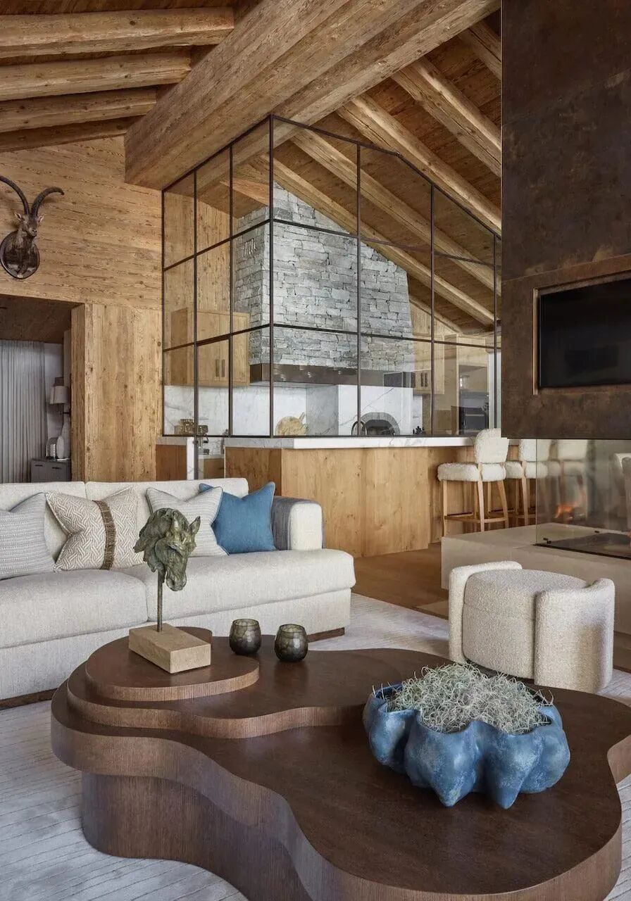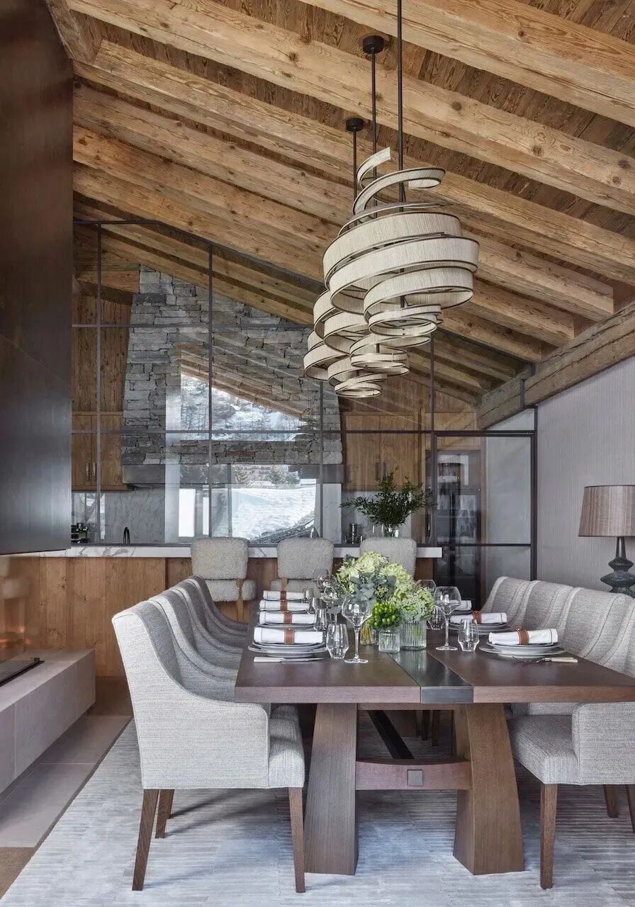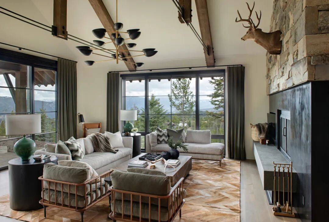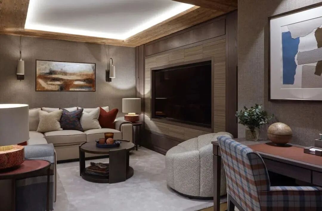 采用了天然粗旷的木材和石材,软装则是细腻又柔软的,室内外交汇与融合,创造了这个自然奢华并行的滑雪度假屋。Katharine Pooley多元的地域、文化经历,既丰富了她的美学理念,也塑造了其独特的设计风格。