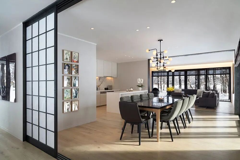 这座5居室的别墅占地面积450平方米,结合日本文化与现代风格设计,将周围的林地和山峦尽收眼底。设计概要之一是利用日本丰富的本土文化来为国际化的家庭创造现代奢华的家居环境。