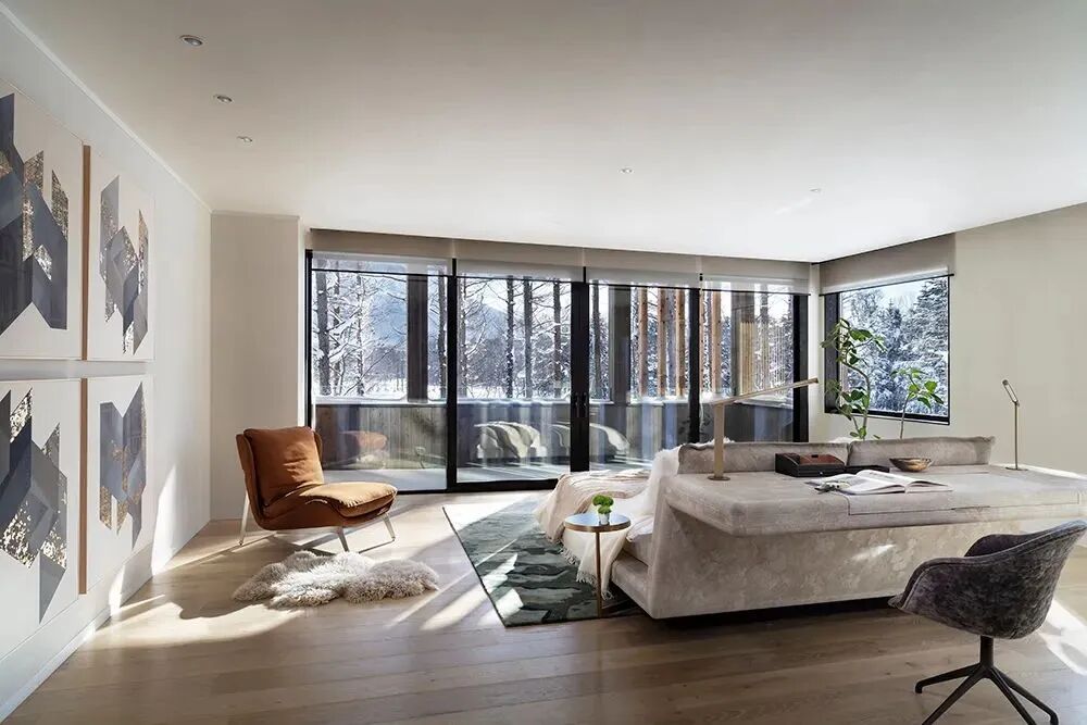 Melanie Turner是一名美国亚特兰大室内设计师,清新、宁静、低调而精致的设计风格是Melanie Turner的设计美学。Melanie Turner借助来自时尚和自然界的灵感,以干净的线条、平衡的空间、微妙的色彩以及定制的雕塑家具,创造出永恒的效果。这个在西班牙山上的度假屋更有家的感觉,Melanie充分利用了周围的自然景观之美,室内很多材料都来自自然,并保留了自然的肌理,在山、雪、林海之间打造了一个与大自然相融的山色之家。...
