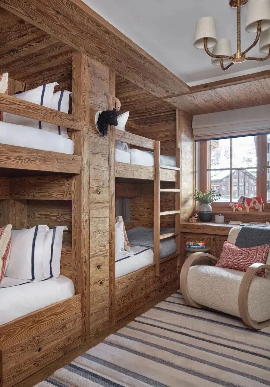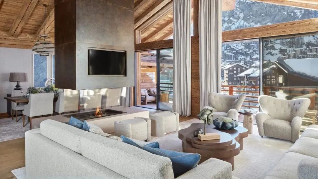 5500平方英尺的小木屋可俯瞰马特霍恩山,窗外的景色就是一副美丽的画作。这里除了漂亮的客厅、卧室和厨房,还有着水疗和健康套房、家庭影院。设计师