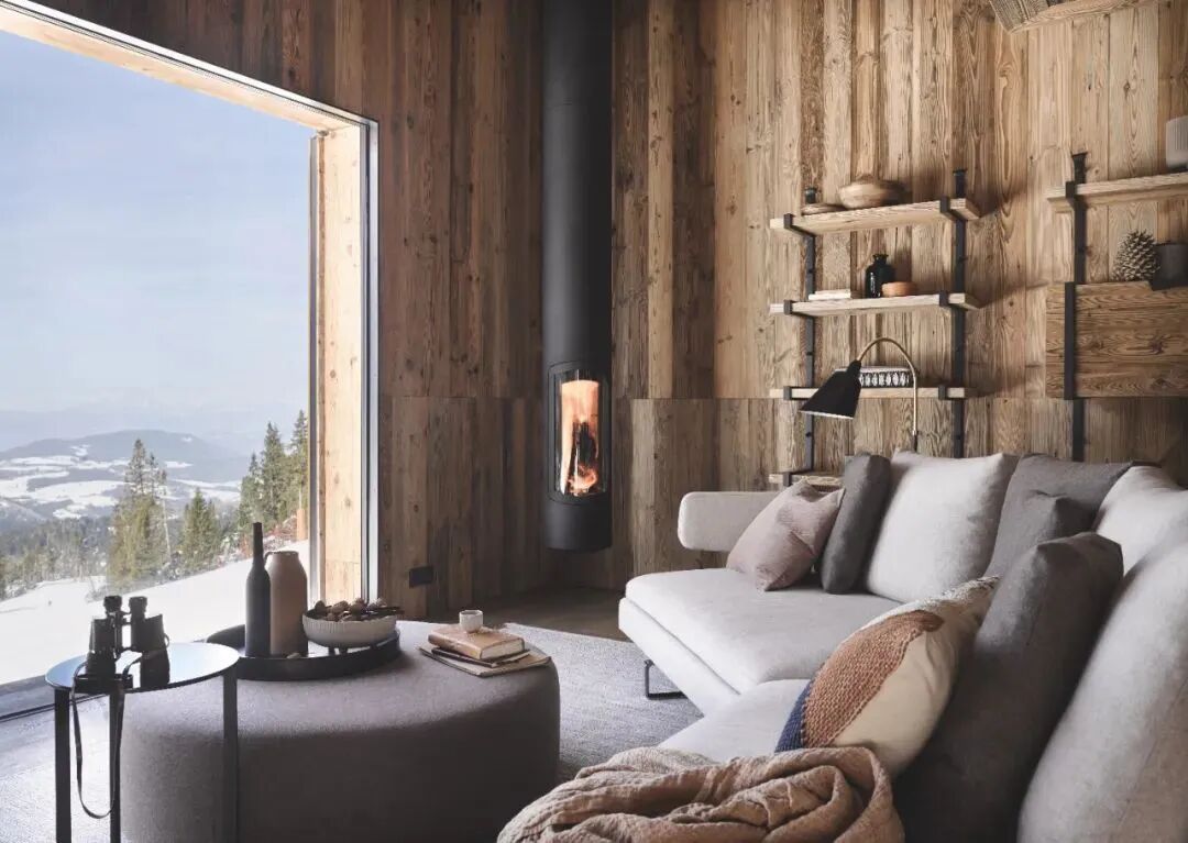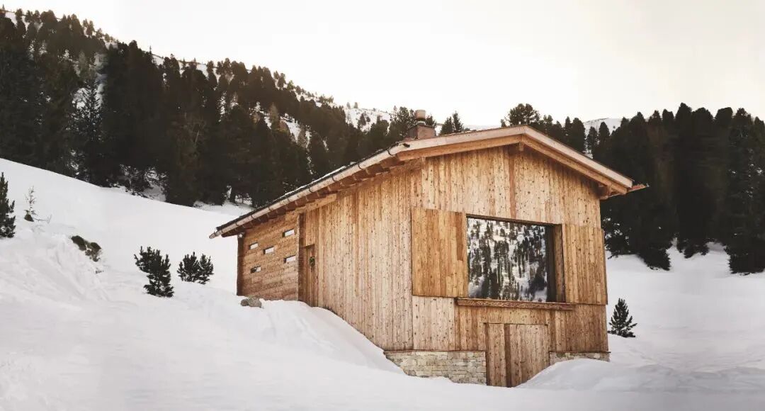 这个小木屋位于阿尔卑斯山 The Dolomites 的滑雪场中,乍看之下,它并不出彩。而正是这种内敛的外表反映了人们对心灵隐世的居住渴望。Aestheics Design
