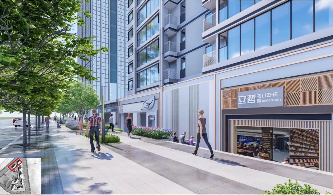 南侧街道(规划道路)还将通过商业外摆、休闲坐凳,绿植空间等方式,营造可游可憩的慢生活空间。