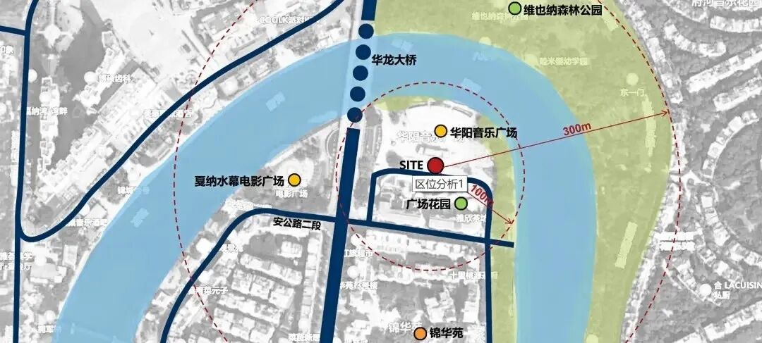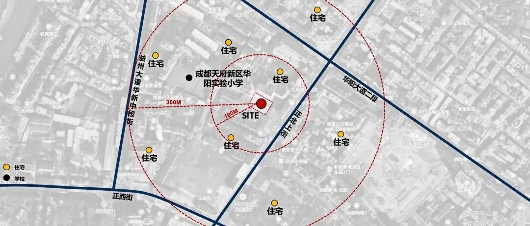 该地块位于华阳大道二段与华熙路交叉口,占地3亩,现状为假日广场停车场。附近商业成熟,且与多处住宅、幼儿园相邻。