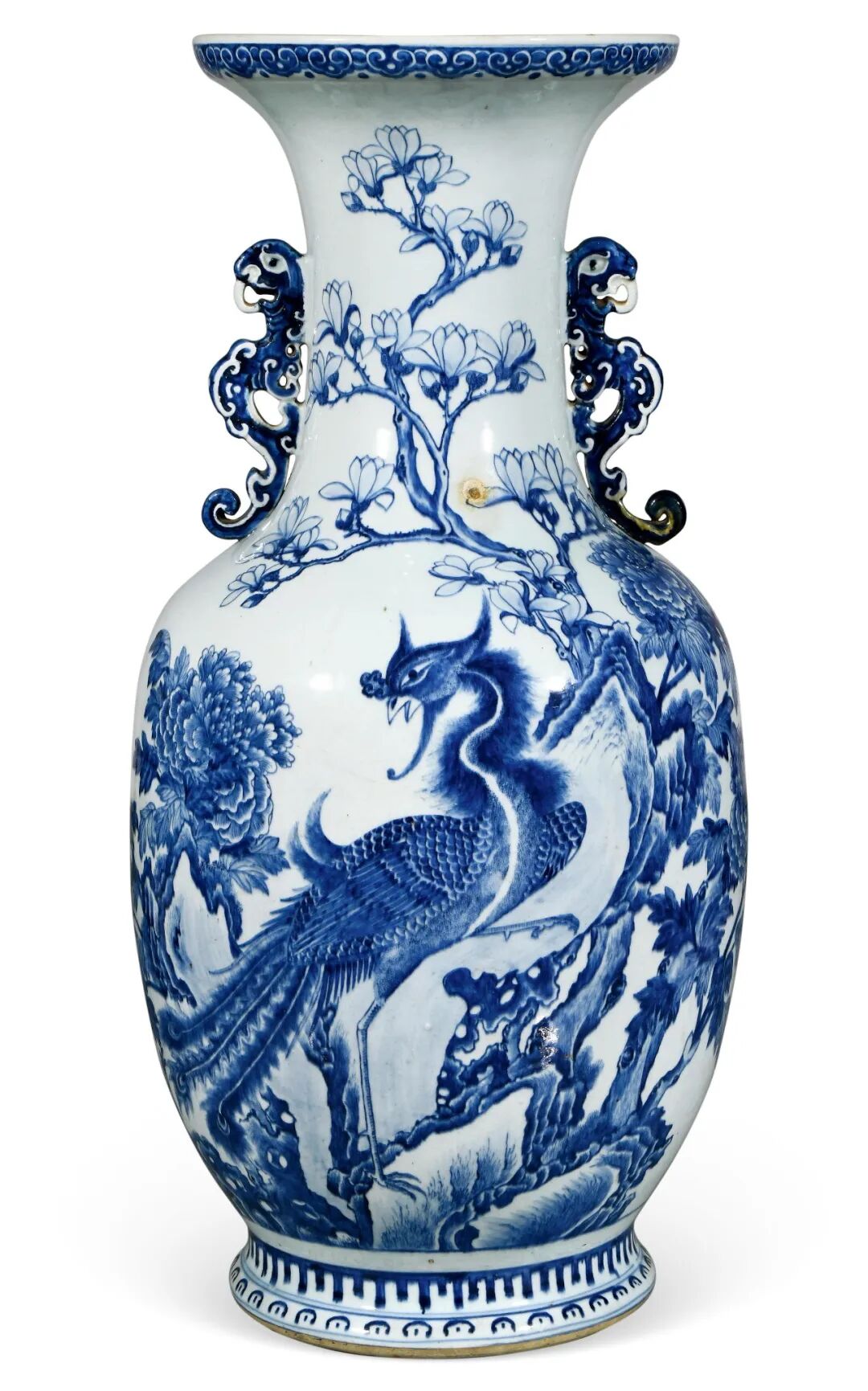 清乾隆 青花玉堂富贵夔龙耳大瓶