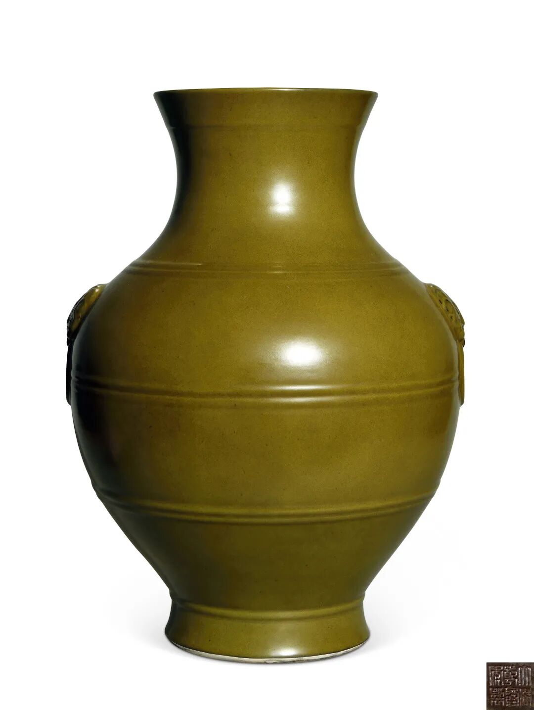 清乾隆 茶叶末釉弦纹铺首衔环耳大尊