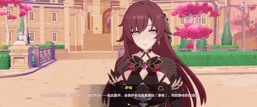 为了配合复杂的叙事手法,《崩坏3》的演出方式也变得愈发丰富:对话、动画、场景移动、战斗、角色同台演出等表现形式被巧妙运用在了剧情里——除了信息量丰富的全语音对话,部分剧情还拥有极强的视觉表现力,或是需要玩家灵活地给予反馈,这些让乐土内容的丰富性再次攀升一个高度。