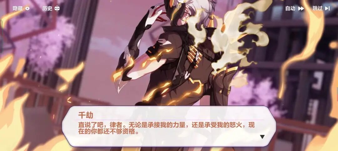 例如「千劫」是除引路人「爱莉希雅」之外,往世乐土第一位登场的角色,登场的缘由很简单——芽衣在试炼时的战斗引起了他的兴趣,因此跑出来跟芽衣过招。通过简单的设定和演出,我们对千劫的第一印象或许体现为「疯狂」、「好斗」、「暴烈」等等,他的形象则与火焰挂钩,与其性格相互验证。