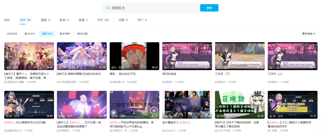 几乎每20分钟都有一个往世乐土相关视频诞生