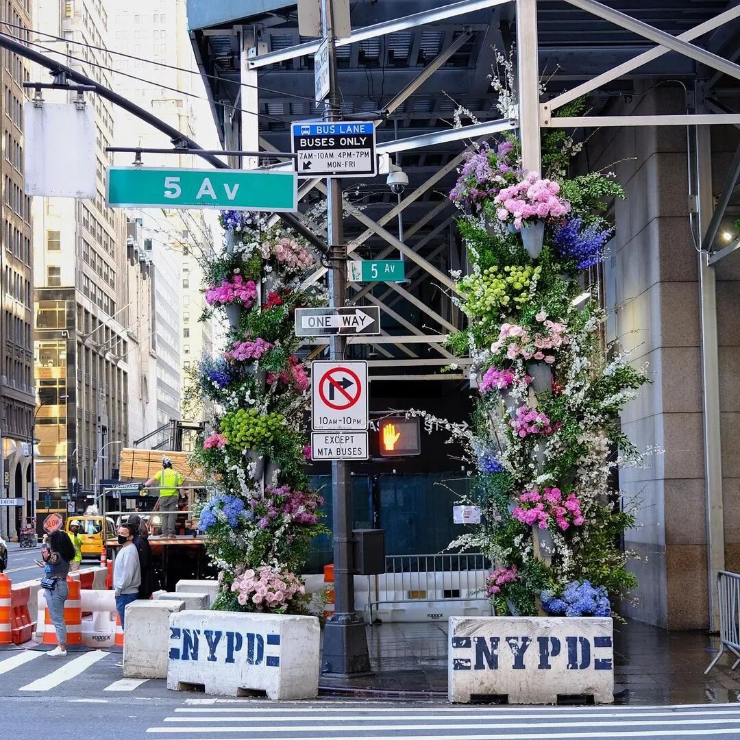 每每看到路边的公共垃圾桶,都会有种微妙的感觉,因为要有垃圾桶,大家才不会随处丢垃圾,但也是因为有垃圾桶,垃圾都往这边丢,所以让垃圾桶变成路上最脏乱的地方,为此纽约花艺设计师Lewis Miller,多年来则将空垃圾桶、电话亭、电线杆化为大型花卉装置艺术,藉由「花艺快闪」(Flower Flash)插花行动方式为其插上色彩缤纷花朵,让本不起眼的城市角落,成为路上最耀眼的一隅!