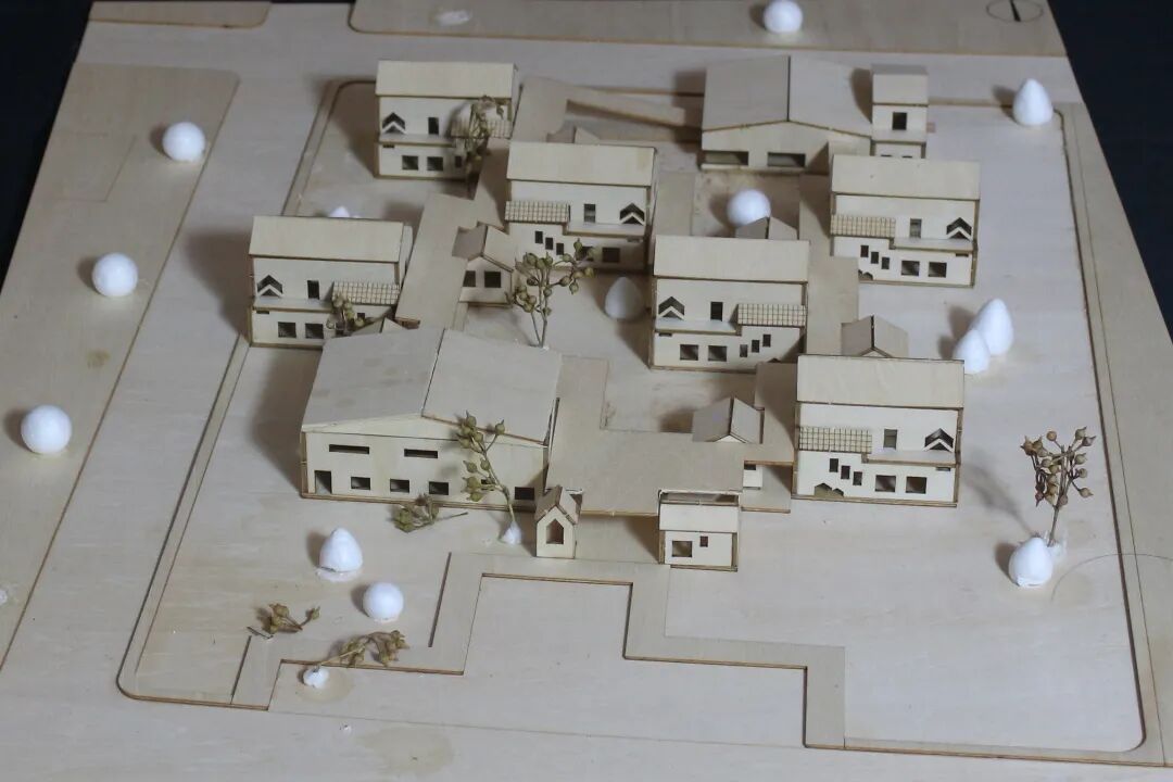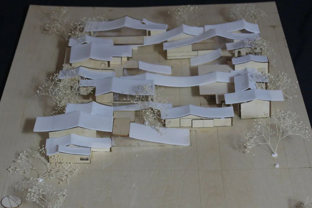 本次儿童之家的设计灵感来源于我的童年。回忆自己的孩提时代,每天好像都是和小伙伴在小小的村庄里四处“冒险”,那段时光短暂却快乐。就像《小王子》里说的:每个人都曾是小孩。于是我邀请到小组的每一位成员从他们儿时的视角在场地里共同建造起了一座村庄、数圈连廊和整片坡屋顶。