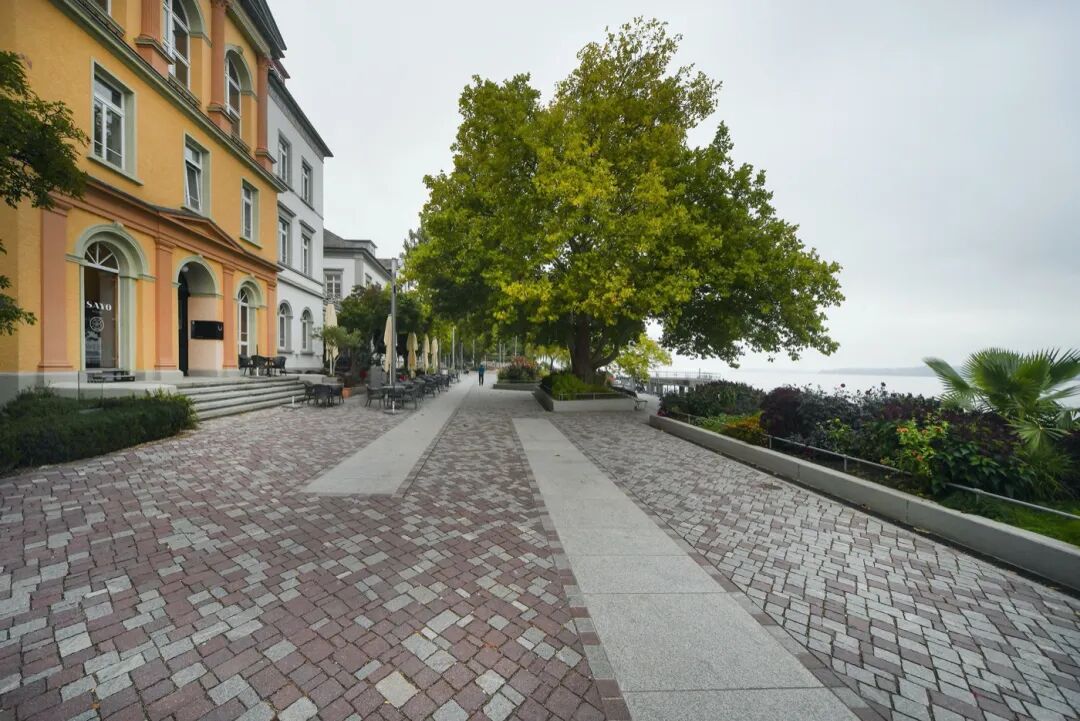 设计的战略目标是小心翼翼地融入新的口音以不断强调这个城市空间中的历史特征,湖滨公园和长廊将作为2021年尤伯林根花园展的一部分来实现。