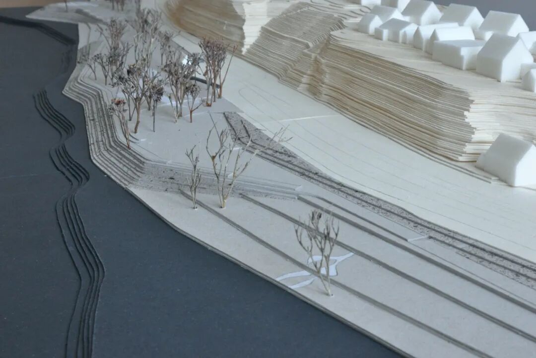 The newly modelled topography within the park is influenced by the structural richness of the Molasse cliffs. This in turn forms a landscape architectural design language which establishes and develops the current ecology.