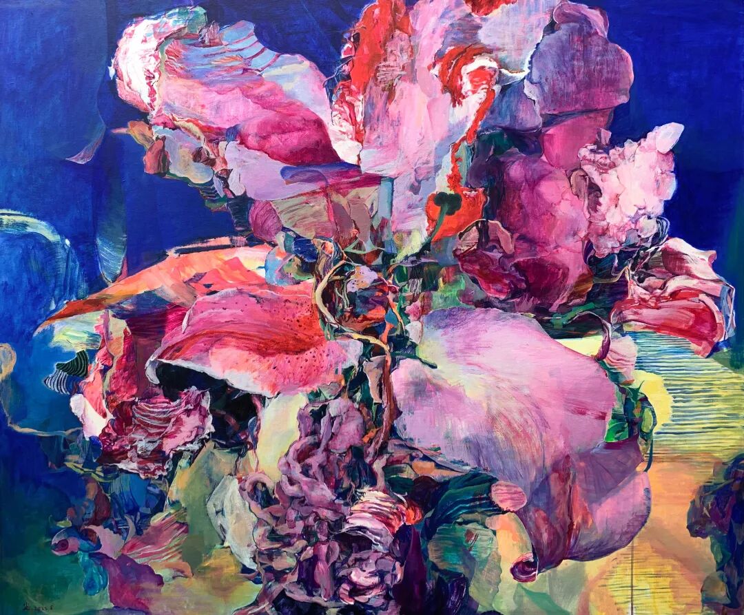 暗黑的丛林,绚烂的肉体,它们像迷雾与瘴气一样在色彩和笔触中纠缠交织弥散,它们是无形的,看不到抓不住;但同时它们又是有形的,有光影颜色,甚至有触觉嗅觉。在这一系列关于肉体和植物的绘画作品中,陈卉运用写实绘画的技法,却画出了去中心化、反主题式的具象表现主义,所有的色彩、笔触和造型并非要去描绘一个清晰的客体,而是将客体通过绘画重塑为自身生命、思考以及肉身体验的非客体化艺术实验。