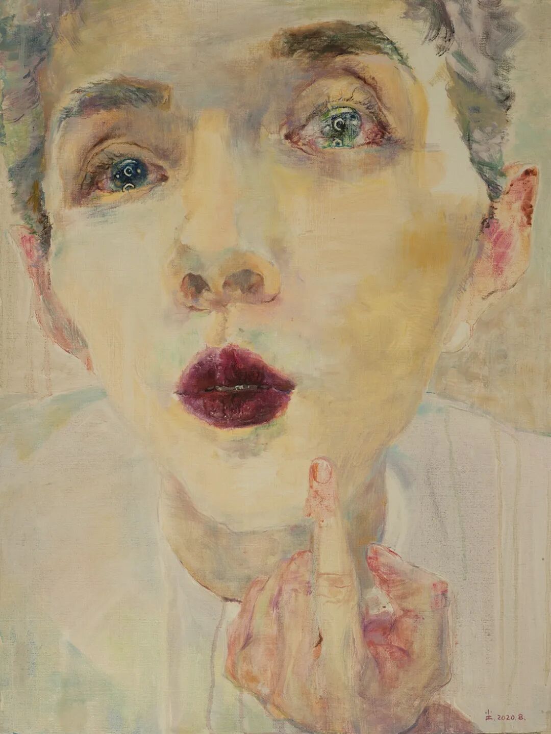 作为绘画的肖像,在这个时代似乎变成了一种不合时宜的原始劳作。而陈卉的绘画从一开始就确定了以肖像为主线,通过十几年来对肖像绘画的不断探索,正在将这种不合时宜渐渐推向不可名状的未来。在2005年至2013年的早期作品《异尚》系列中,陈卉运用写实油画的技法和本职为造型师的化妆技能,塑造出了一批生活于物质极大丰富的消费时代和全球化网络化的,既虚拟又现实、既荒诞又真实的“中国新世代”。2014年至2019年的《你的肖像》系列,则是艺术家以朋友家人或者遇见的人为对象,而且不再拘泥于写实的古典技法,企图通过与一个个实在的灵魂的碰撞与激发,来描绘出一张张“灵魂出窍”的“精神肖像”。2020年,与全世界大部分人一样,在大半年的自我隔离状态下,陈卉能见到的人绝大多数是屏幕上没有温度和触感的数字化的人,那一张张处于灵魂悬置状态的面孔构成了艺术家接触和感知外部世界的摩斯密码,而将这些面孔用油画颜料涂绘在纸上就成了艺术家理解和剖析现实世界的解码过程。