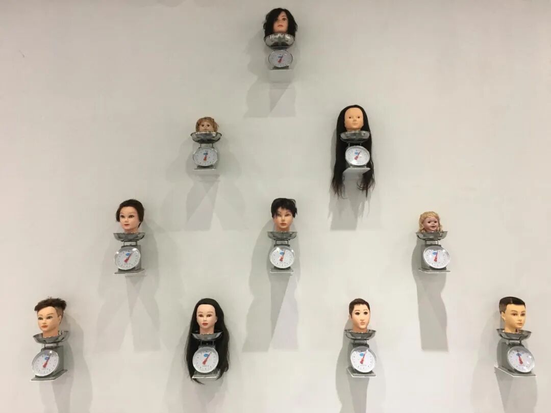 李浩 你的自由意志到底有多重 约200cm×300cm 假发头模 老式台秤 2018