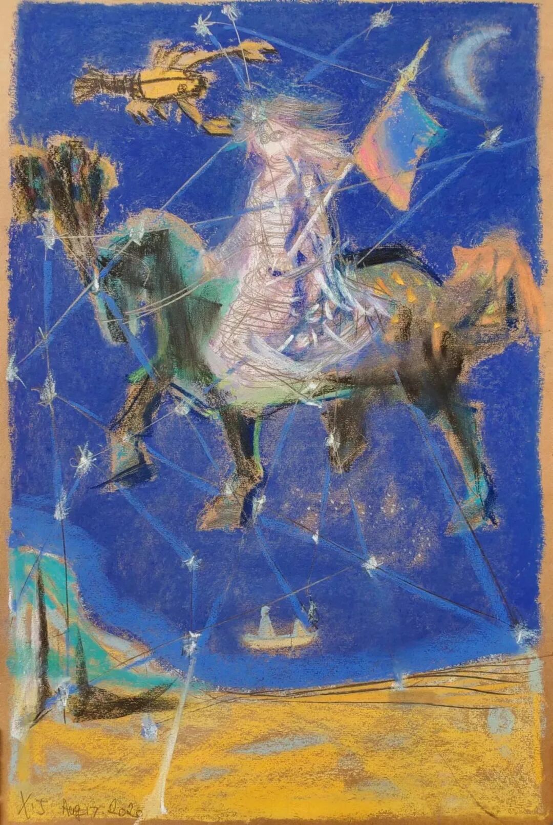 星座,46x30.5cm,2020,纸本色粉、炭精、铅笔