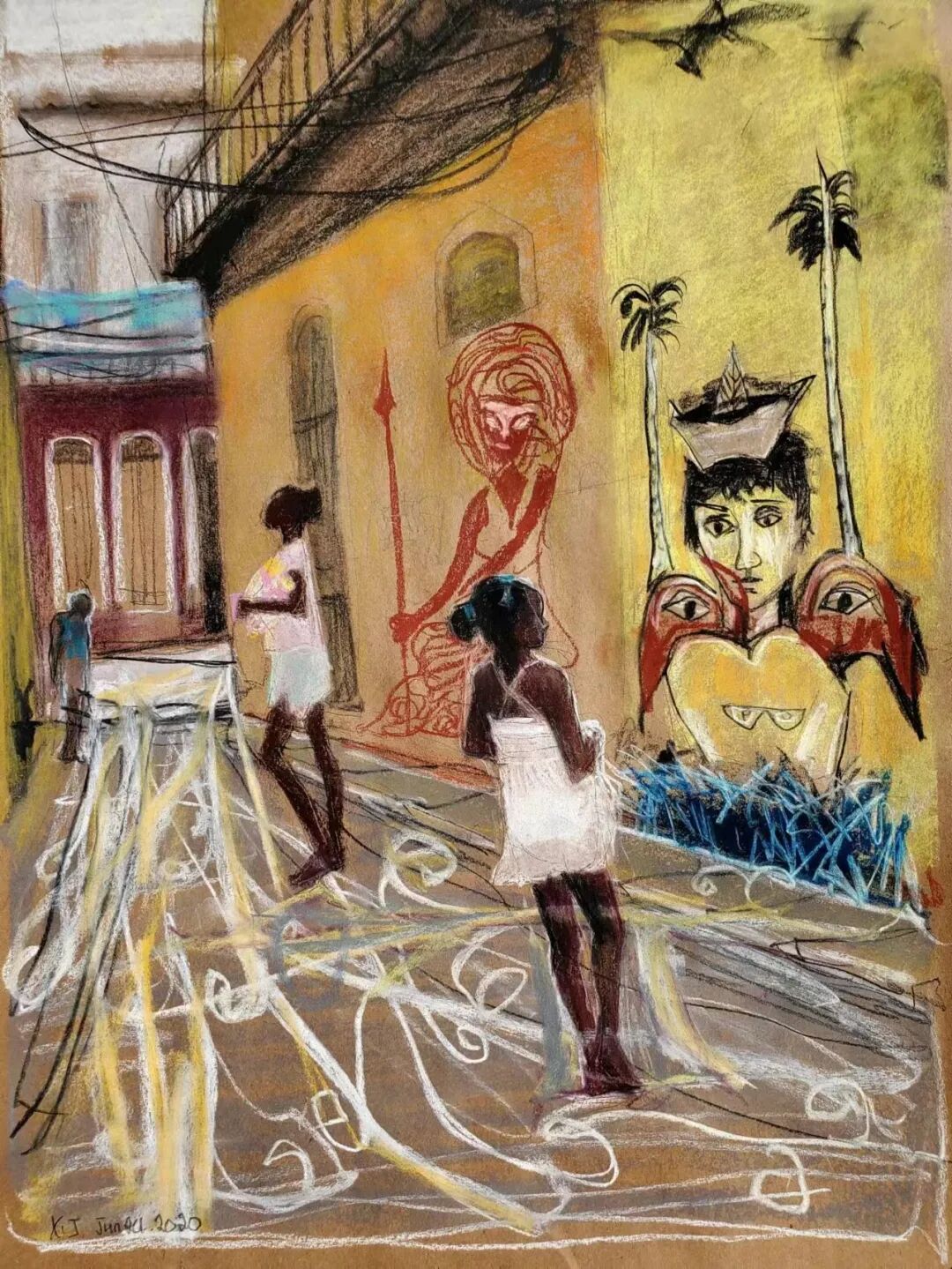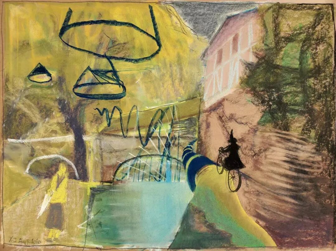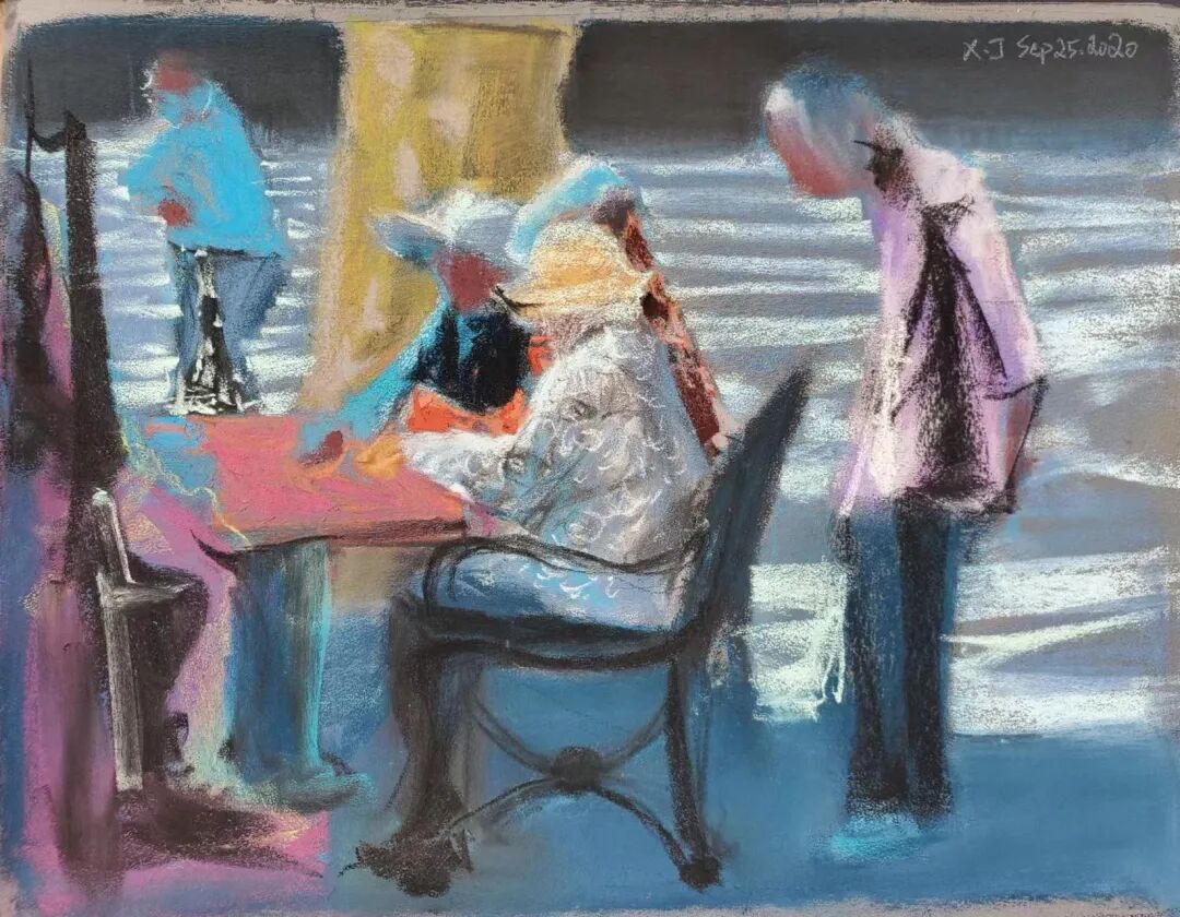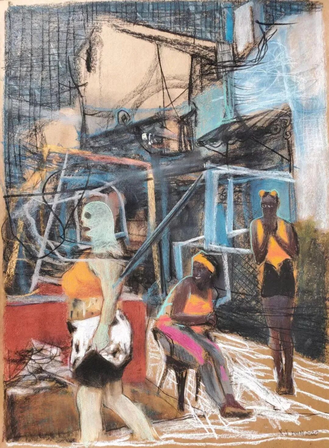 华埠,23x30.5cm,2020,纸本色粉、炭精、铅笔