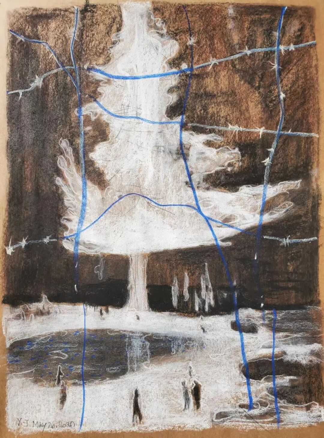 死亡谷,23x30.5cm,2020,纸本色粉、炭精
