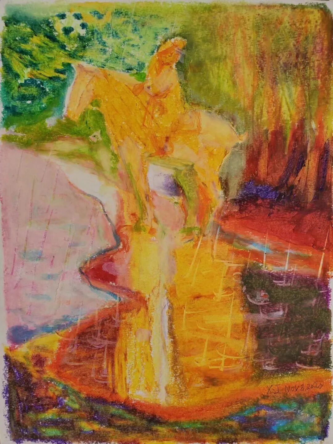 太阳雨,30.5x23cm,2020,纸本油画棒