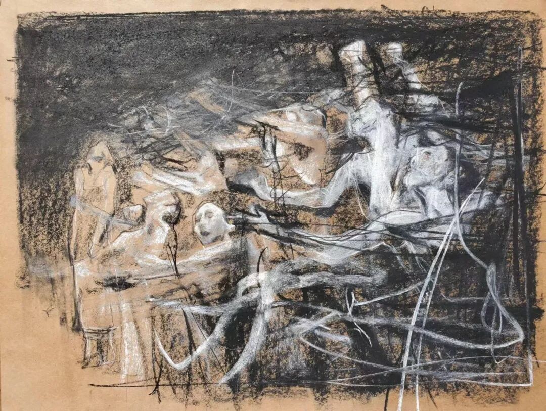 复苏 NO 2 ,46x61cm,2020,纸本色粉、木炭、炭精、铅笔