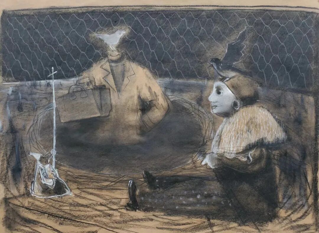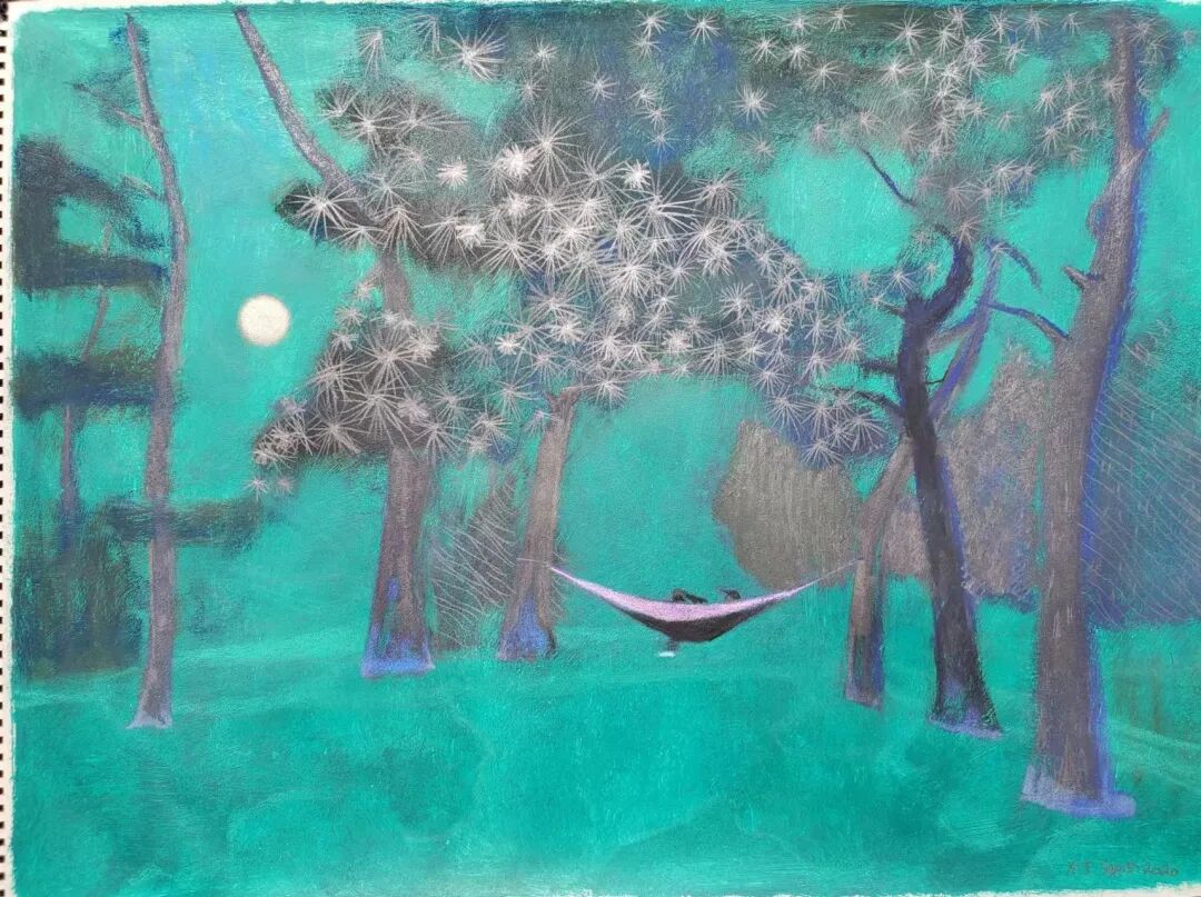 曲终,30.5x23cm,2020,纸本油画棒、铅笔