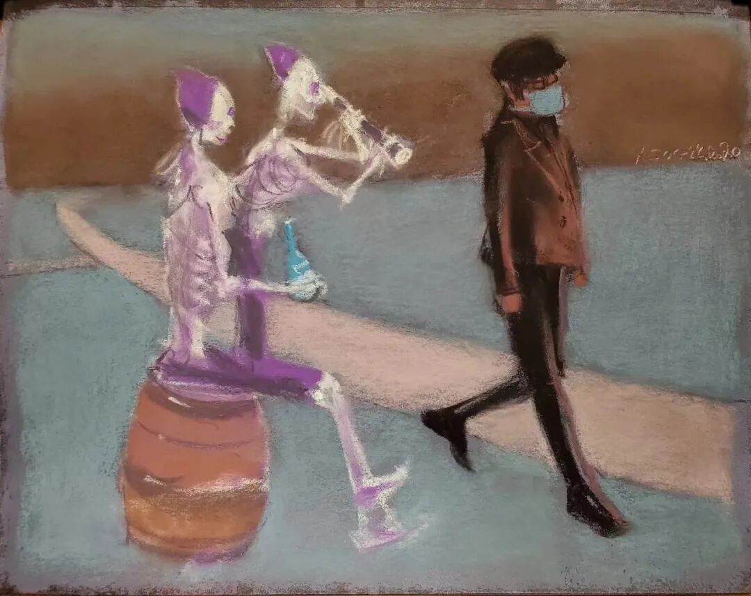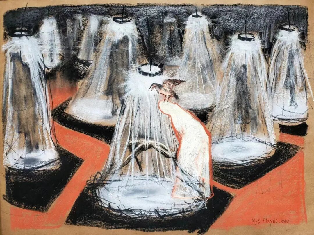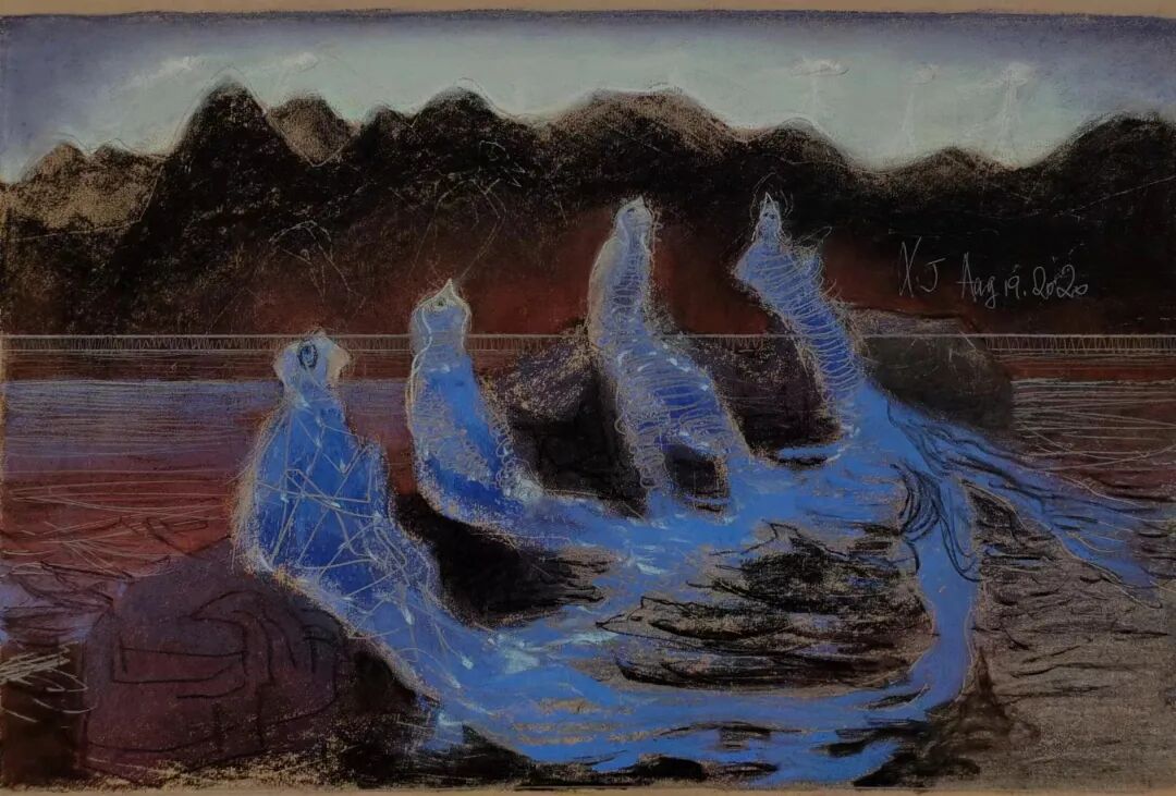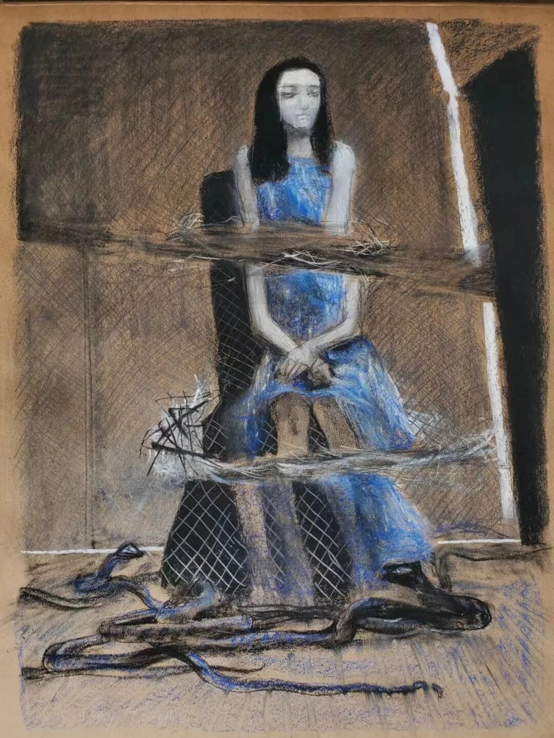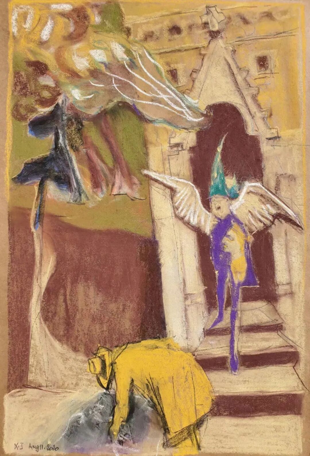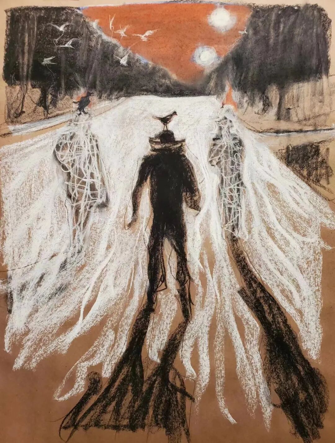 灵魂之歌,30.5x46cm,2020,纸本色粉、炭精、铅笔