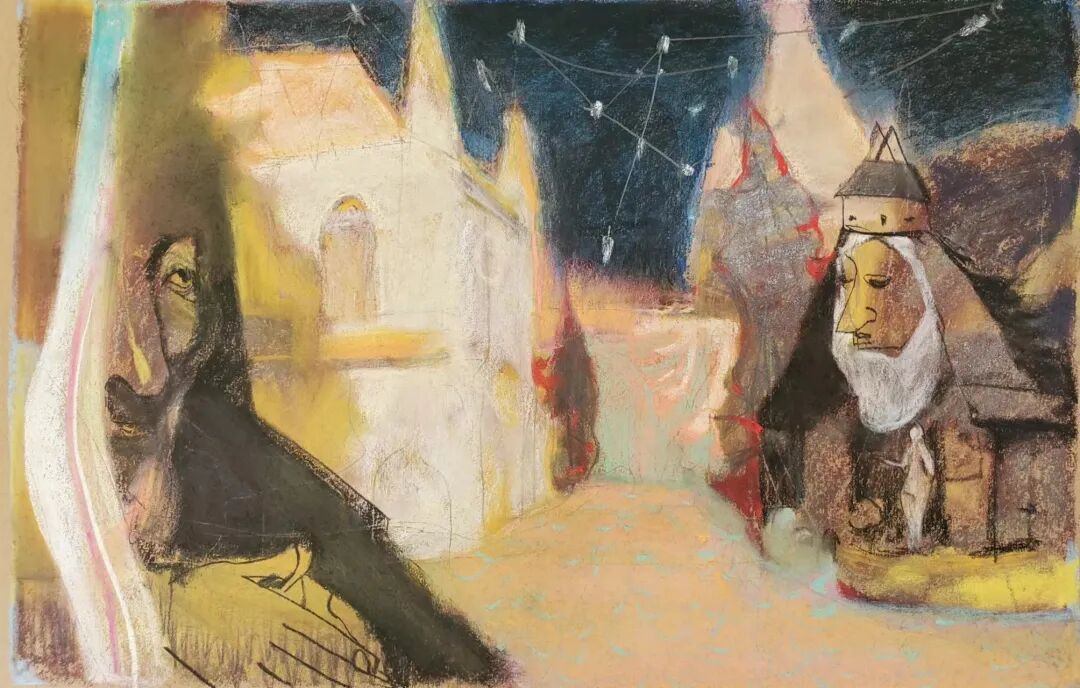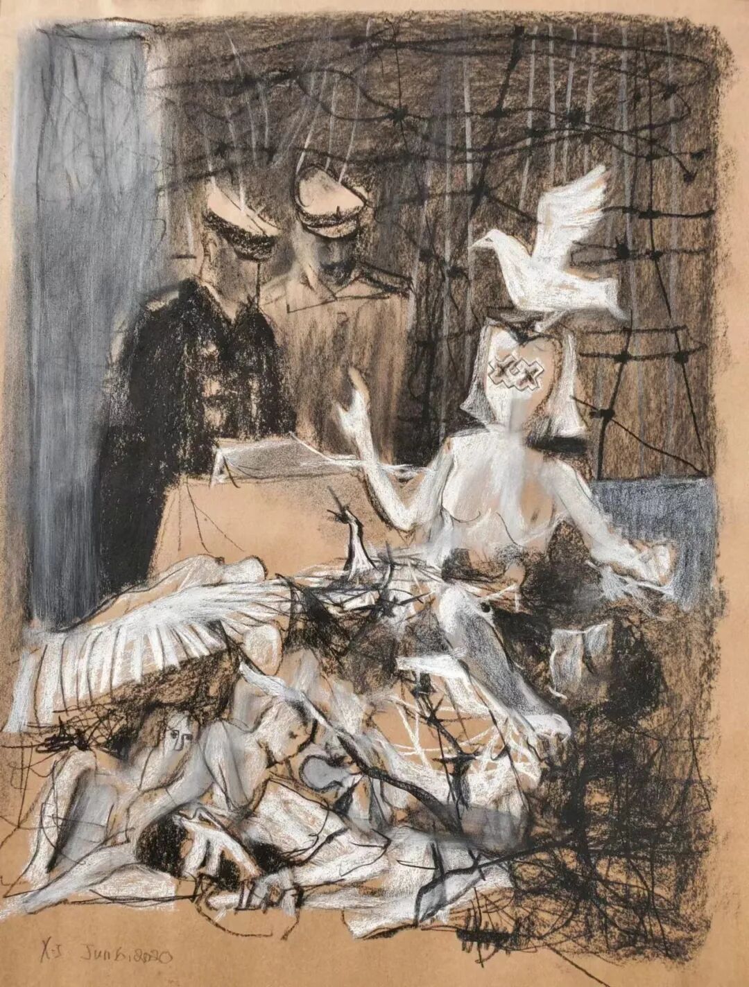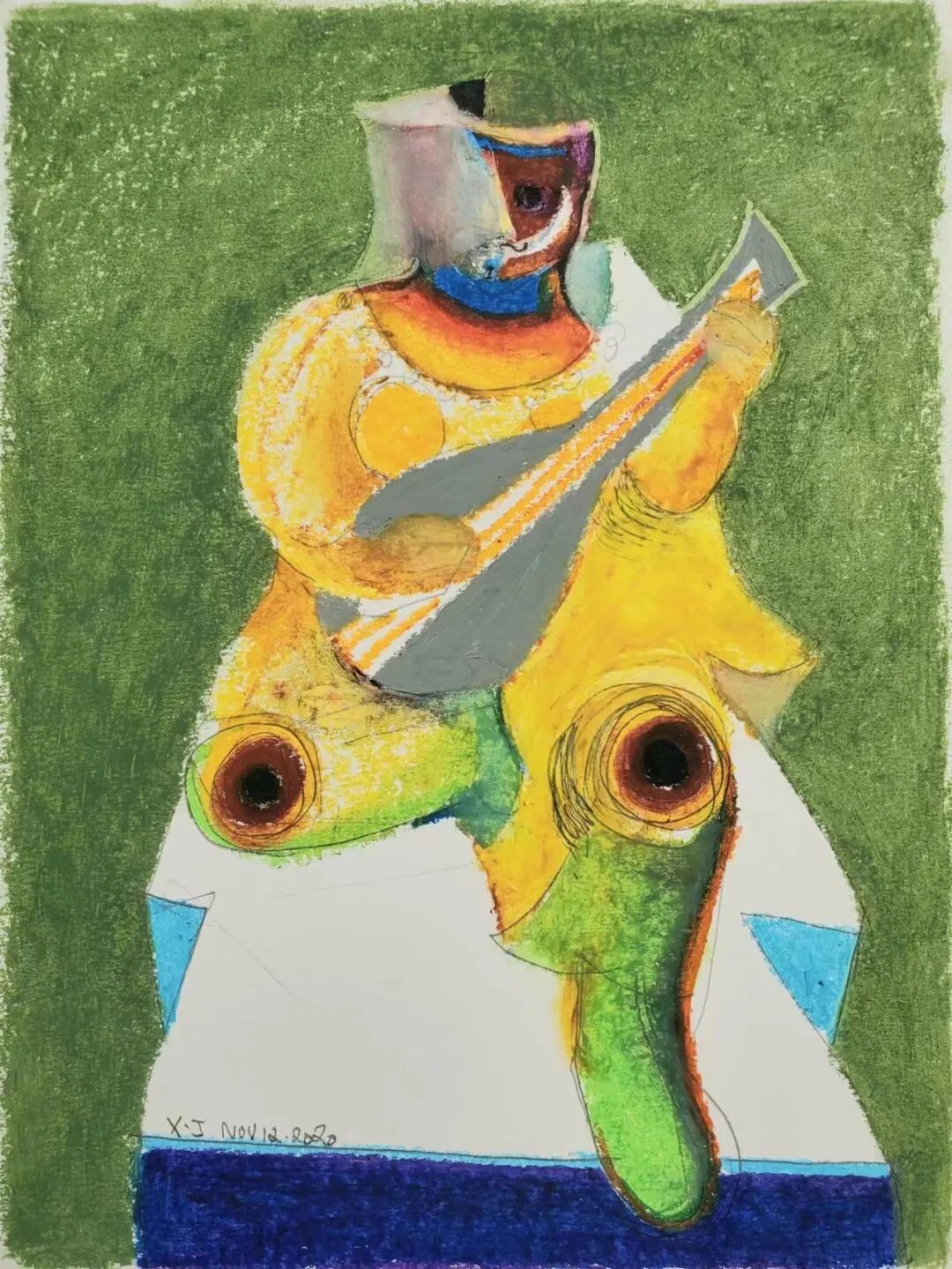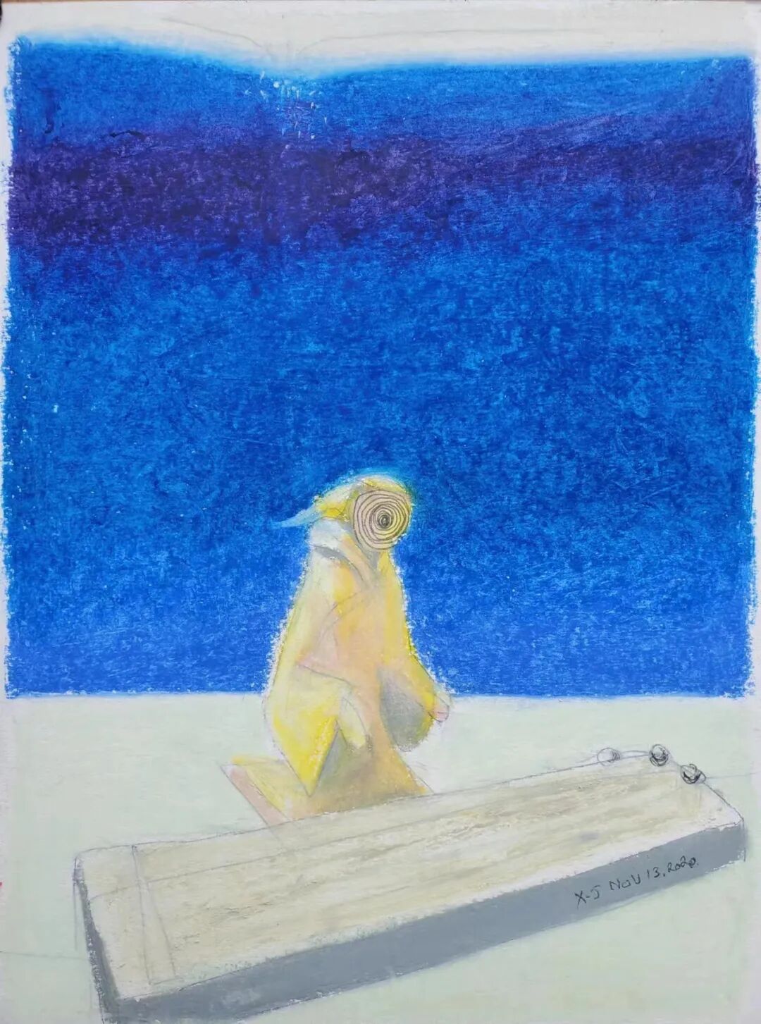 广陵散,30.5x23cm,2020,纸本油画棒、铅笔