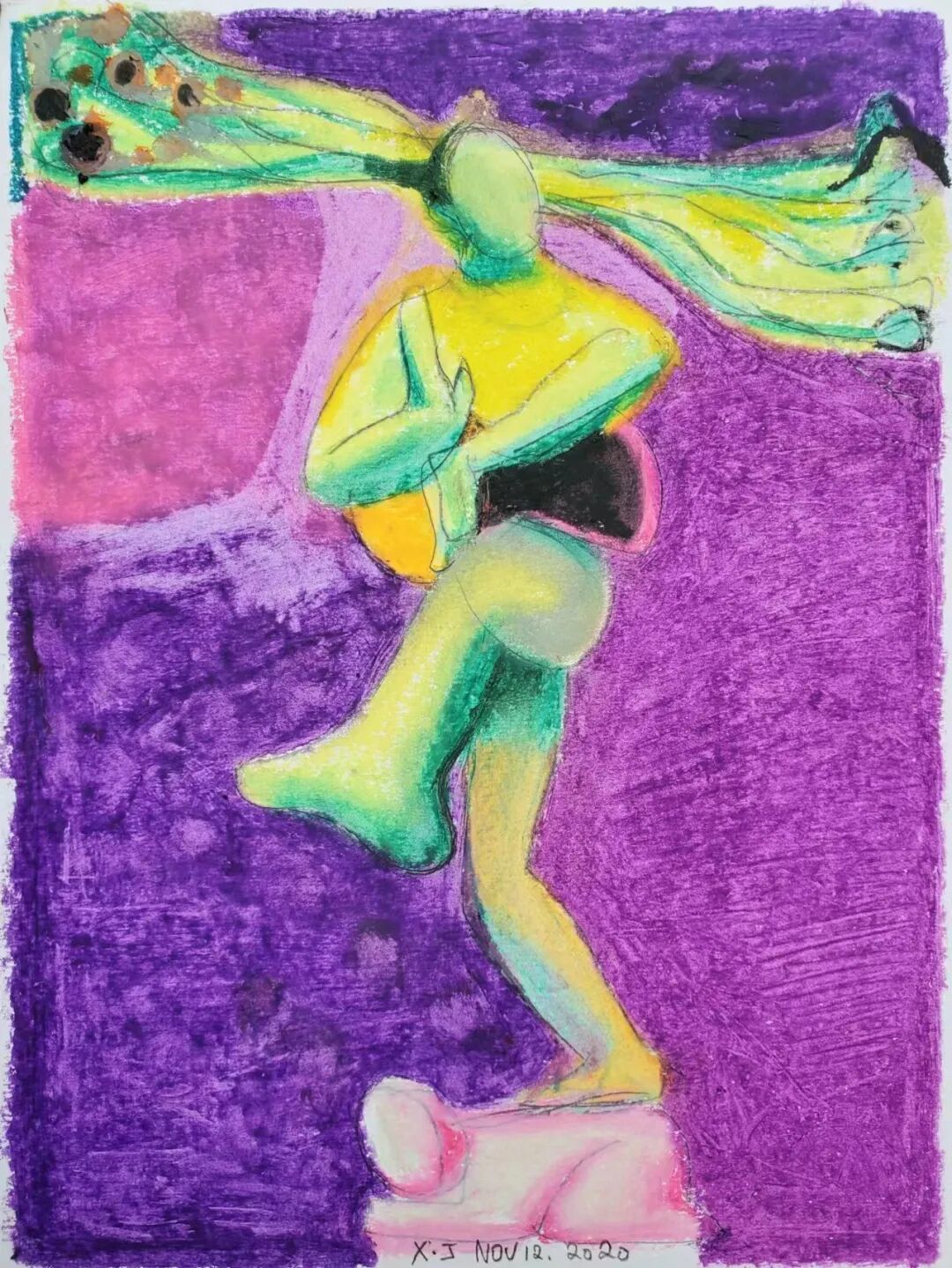 鼓舞,30.5x23cm,2020,纸本油画棒、铅笔