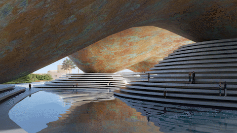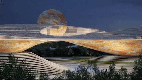 最后再加入亿点点细节,这就是来自英国杰典国际建筑的三星堆博物馆新馆设计方案:“三星堆之眼”,该方案最后获得了2021年 ICONIC AWARDS 创新建筑大奖。