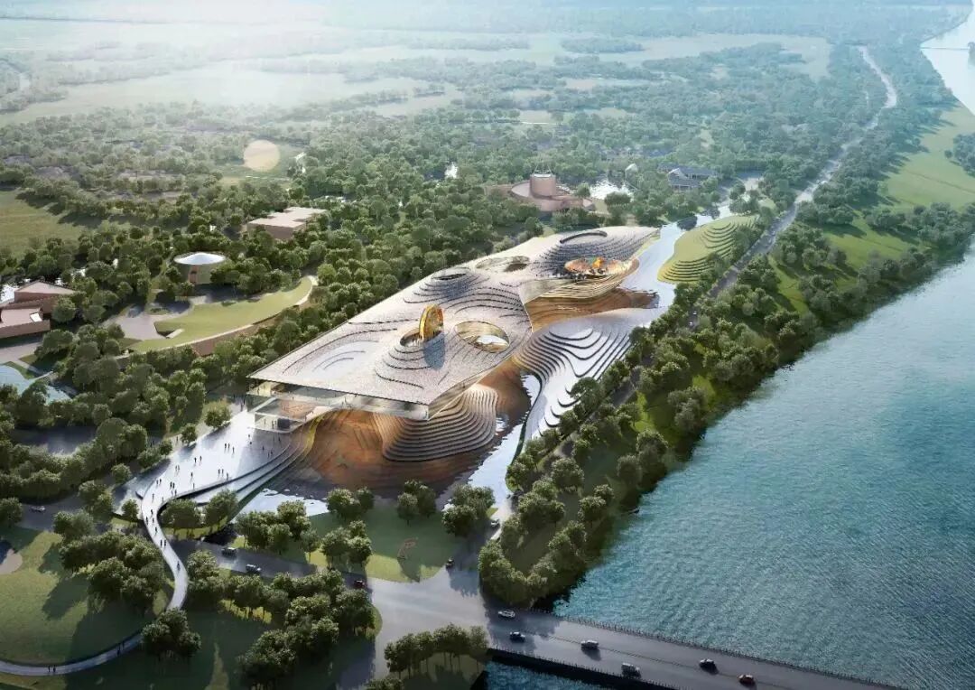 直到 2019年,那俩祭祀坑的维修工作快完工时,终于有人发现,这底下原来还藏着6个坑呢!但是原来的展馆规模已经完全满足不了如此数量的文物展览需求,于是三星堆博物馆新馆的建设立刻被提上日程,悬赏1千万元向全球征集新馆设计方案,项目估算总投资 10.6亿元。