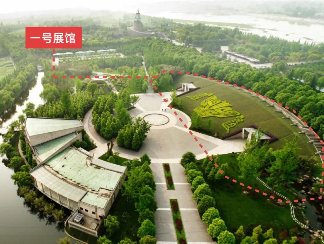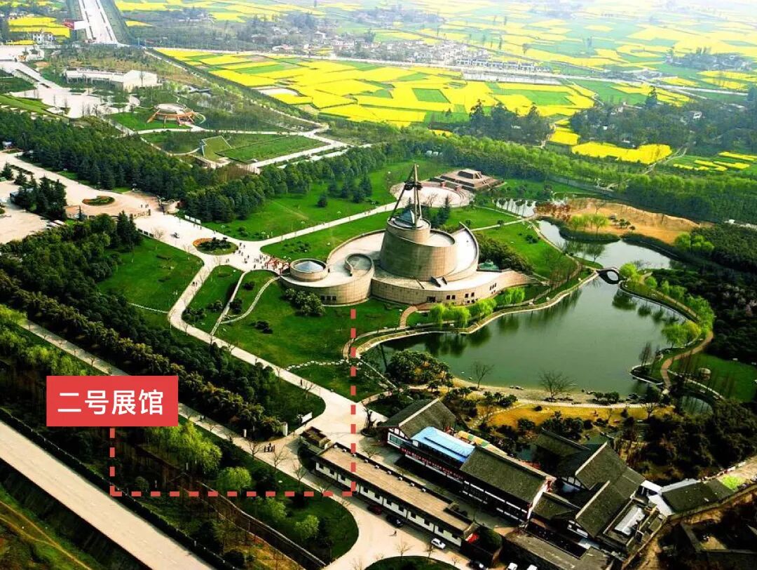 现有两个展馆,一号展馆建筑为半弧形斜坡生态式建筑(2004年建成),二号展馆建筑为三部一体的变形螺旋式建筑(1997年建成)。而此次项目是要为三星堆建造新的展馆。