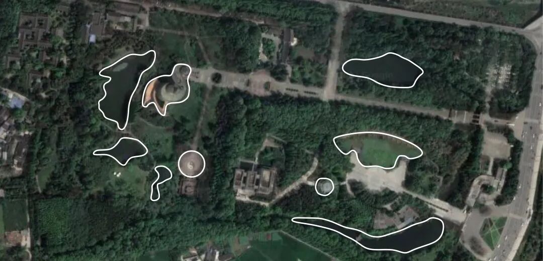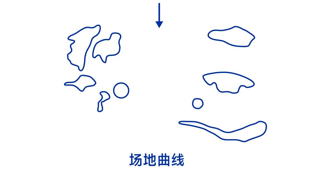 从图上我们可以看到,整个旧三星堆博物馆场地的规划中,不管是建筑,景观,还是原有的自然风貌,他们的形式里都存在许多的曲线,我们可以提取其地势的形状作为关键元素。