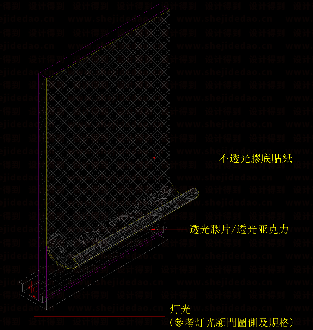 先确定灯光位置和透光材料类型 ▽