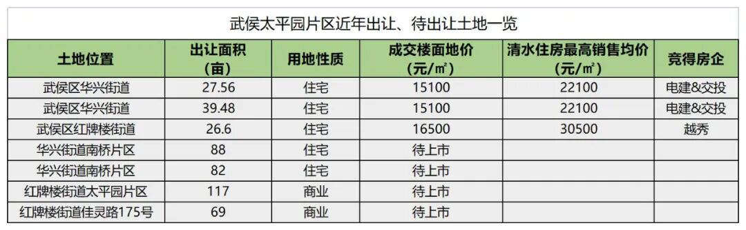 而在2021年武侯区供地计划中,该片区还有待上市的117亩、48.28亩商业用地,这2宗地块,是太平园TOD项目的规划用地。