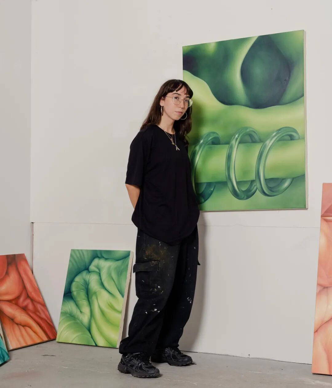 Following Sun (gabi and maria),2023,布面油画,100×75cmFrog,2022,布面油画,50×75cm la pa ti ta,2022,布面油画,30×25cm Libélula,2022,布面油画,25×20cm Ribbed,2022,布面油画,100×75cm Stomach Side,2022,布面油画,32.5×30cm Dormilona,2022,布面油画,25×20cmNickel,2022,布面油画,75×50cm Sometimes, Actually, Often,2022,布面油画,25×20cmCombination Skin,2022,布面油画,100×75cmLean To,2022,布面油画,25×20cmDolor de Barriga,2022,布面油画,50×40cmSomeone in Every Swamp,2022,布面油画,25×20cm Pinch, 2022Oil on canvas,25 × 20 cm
