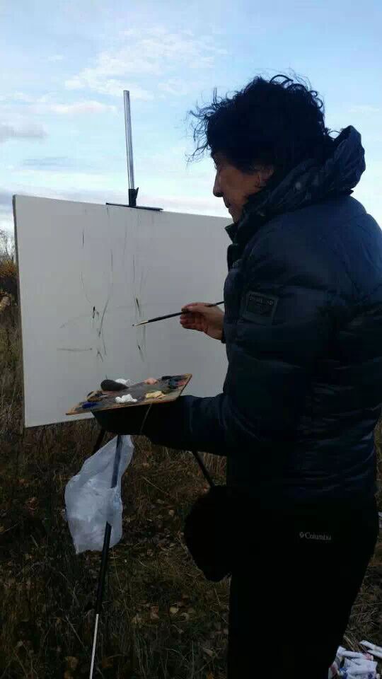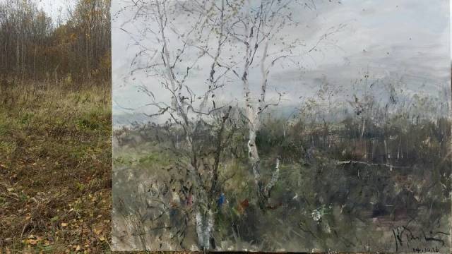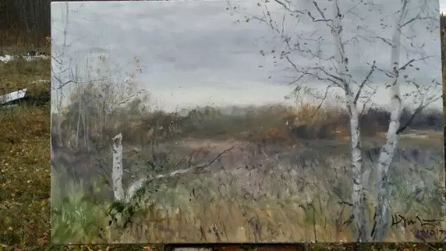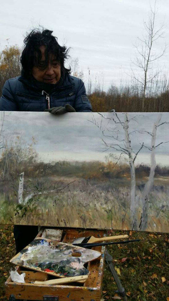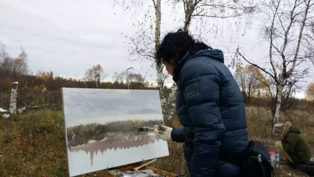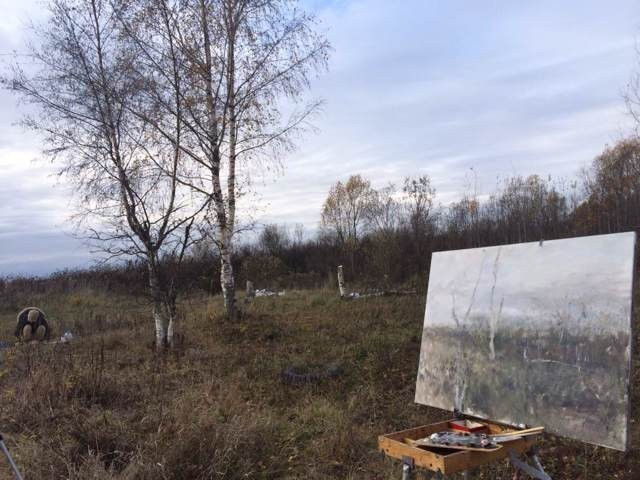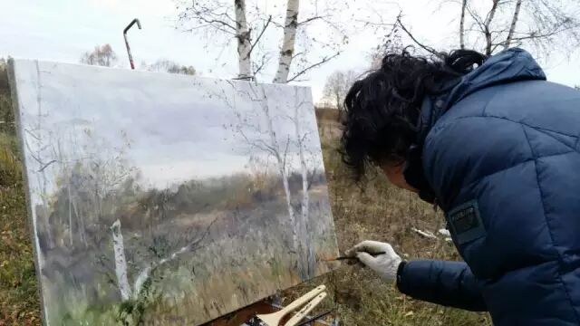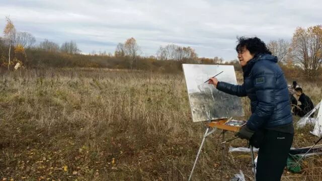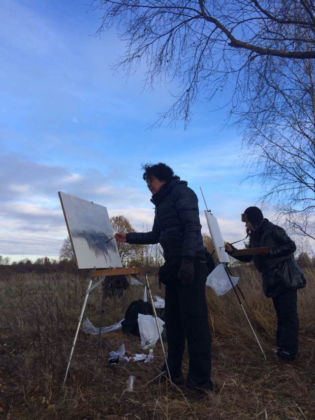 在圣彼得堡的诺夫格罗得,何多苓在旷野,和俄罗斯的天空、森林、河流、土地深情对话,写生作品一气呵成。