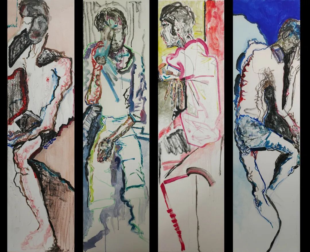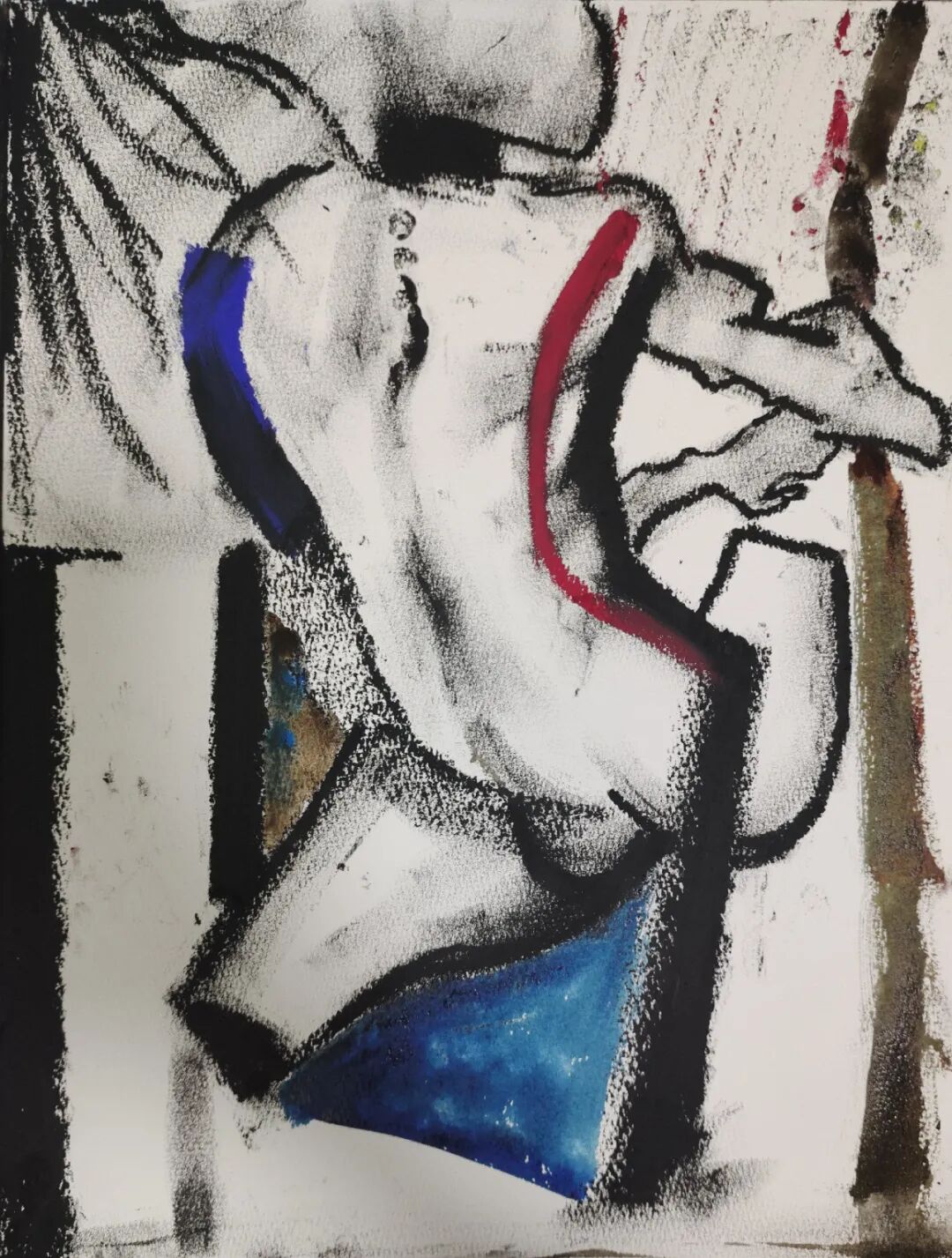 纸面丙烯、油画棒、木炭条