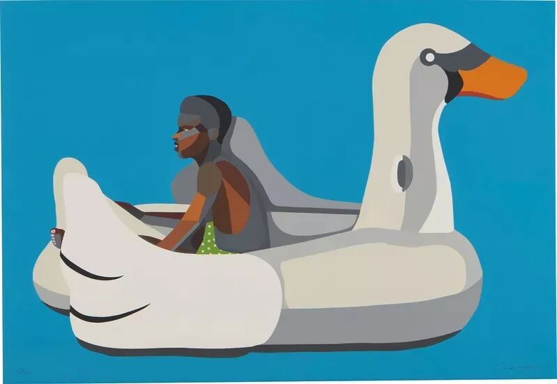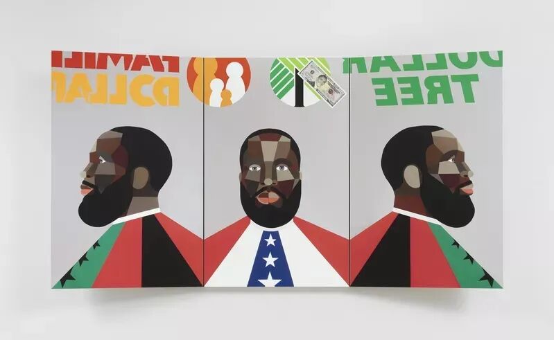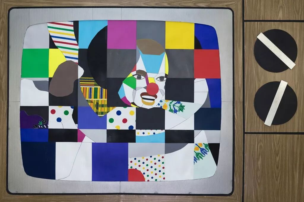 Woodcut and screenprint with fabric and collage in colors, on wove paper, the full sheet.