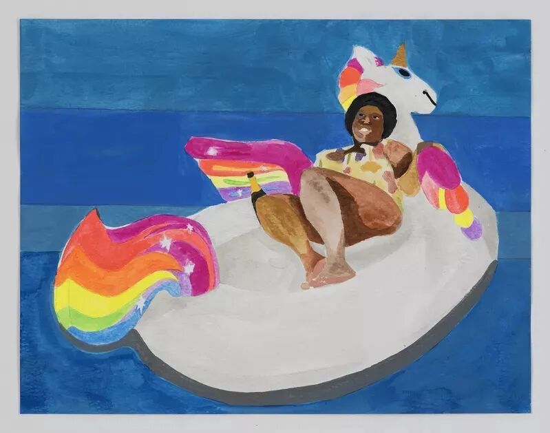 Watercolor, ink, printed vinyl shelf liner on watercolor paper