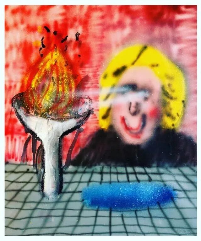 Fire vision / acrylic, spray paint and oil pastels / 47×39 cm canvas / 2019