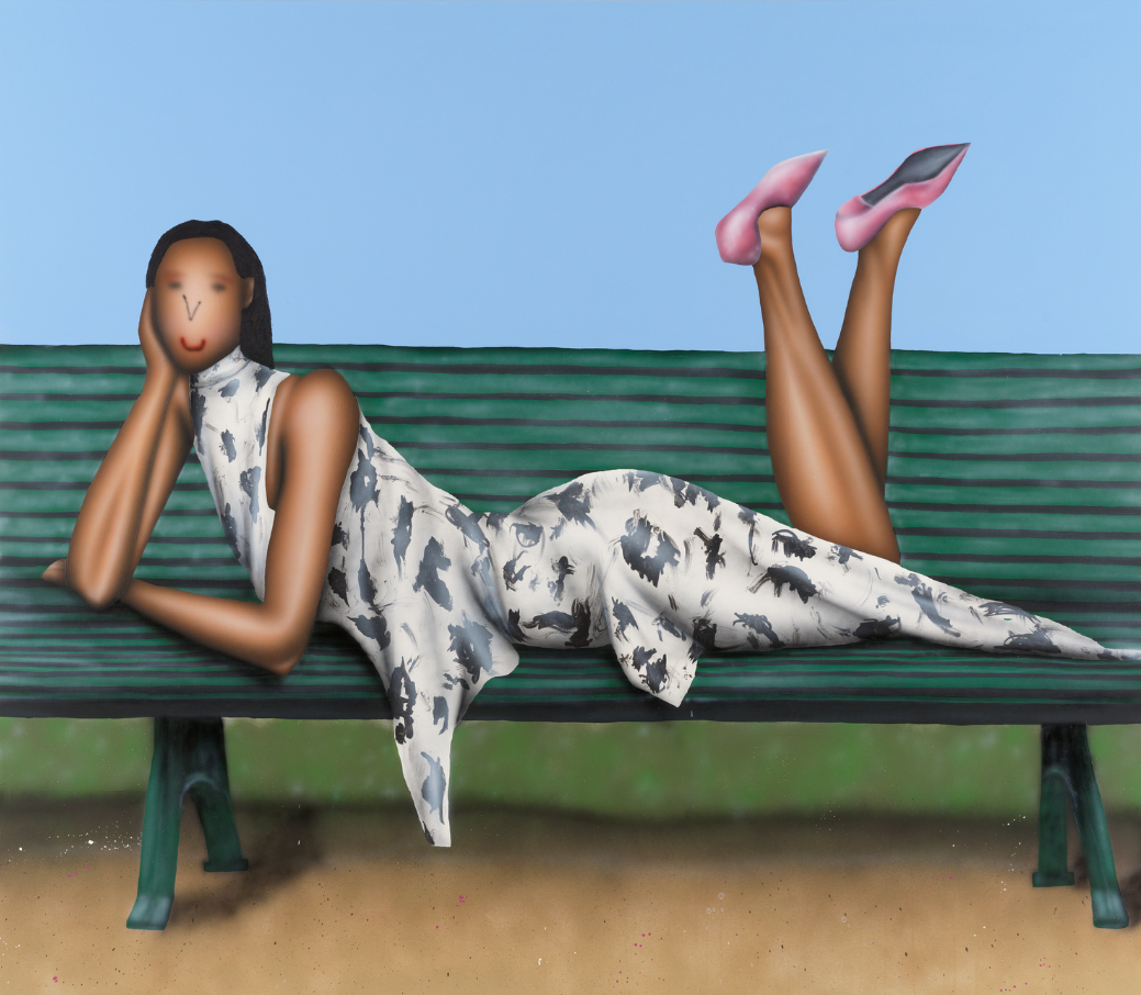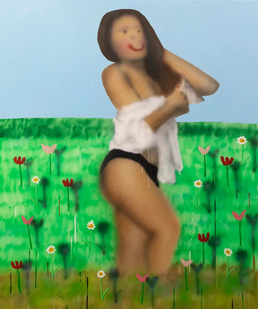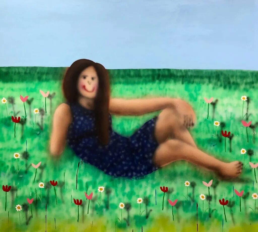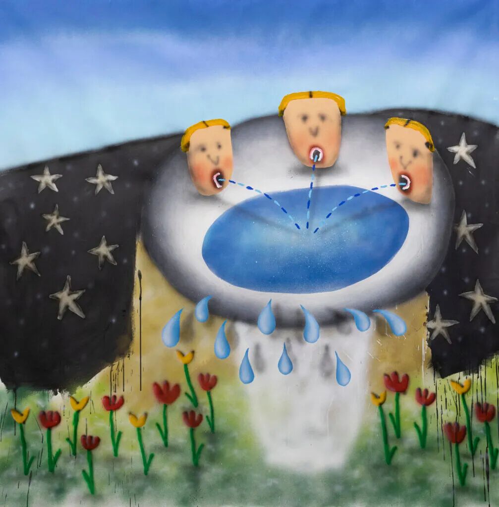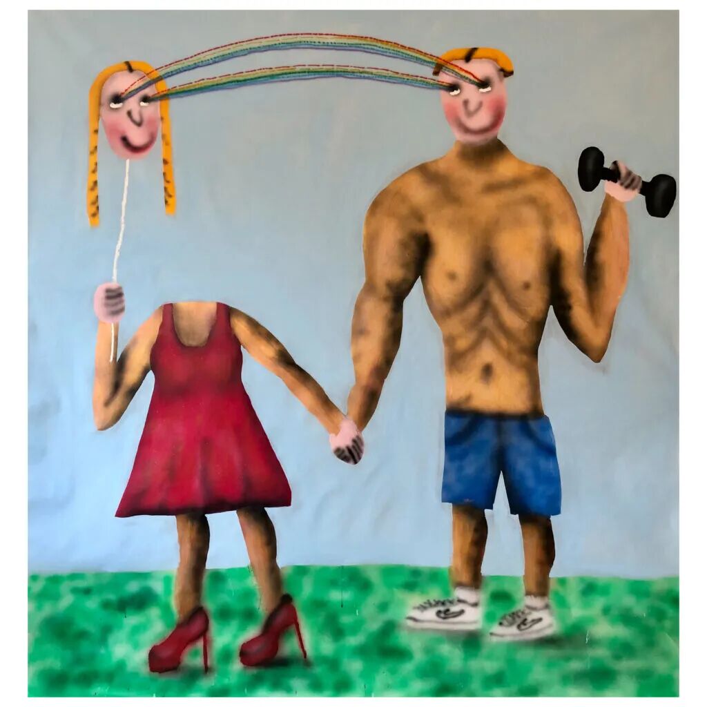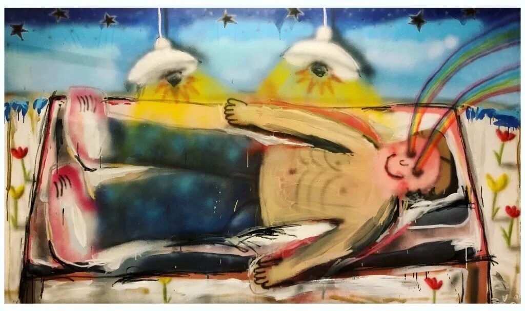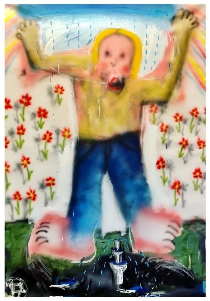 When the rain catches you in the middle of the park / acrylic, spray paint and oil pastels / 172×120 cm canvas / 2020