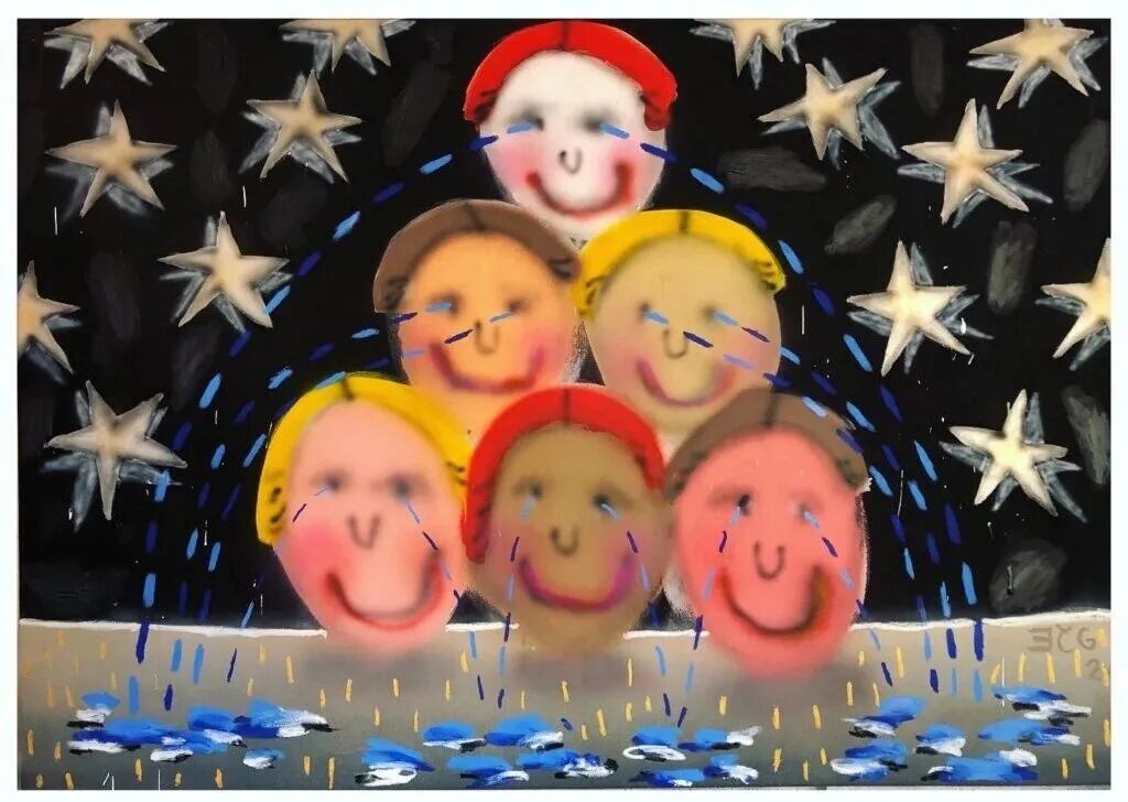 The cool kids / acrylic, spray paint and oil pastels / 190×160 cm canvas / 2019